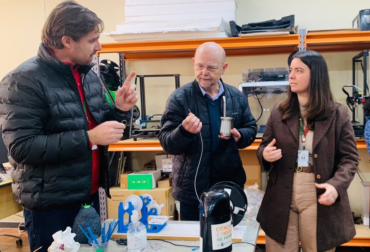 Acompanhado pela Direção-Geral e por servidores, Bohn Gass realizou um tour pelos setores, passando pelas áreas de Ovinocultura e Olericultura e pelo Laboratório IF Maker de Informática. Em cada parada, teve a oportunidade de conhecer as principais produções, conversar com professores e estudantes e ouvir relatos sobre como os projetos contribuem para a formação profissional e o desenvolvimento local.