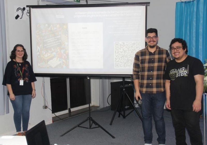 Nessa noite, ainda houve o lançamento do livro “A Matemática ensinada de forma recreativa: uma proposta de gincana para o ensino de Matemática”, de autoria dos professores Calinca Jordânia Pergher e Gabriel de Oliveira Soares, em parceria com estudantes do curso de Licenciatura em Matemática.