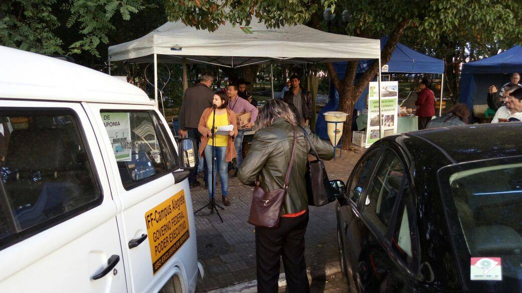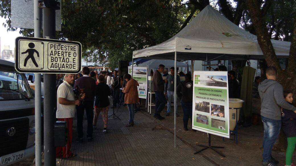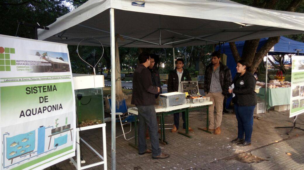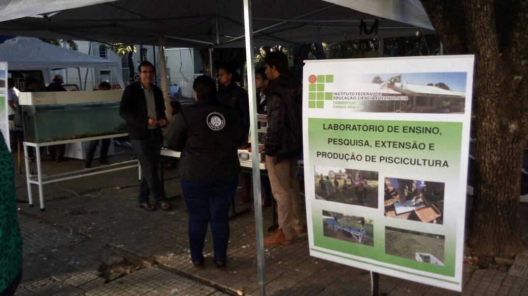 Durante o turno da manhã, período em que foi realizado o evento, a equipe do Laboratório de Piscicultura, o qual fazem parte quatro alunos dos cursos Técnico em Agropecuária e Bacharelado em Zootecnia, além do Prof. Molina e do Técnico Siqueira, levou para demonstração à comunidade, três espécies de peixes que são criadas e estudadas no campus: tilápia, pacu e carpa colorida - peixes diferentes dos comercializados durante a feira. Os alunos também levaram para a Praça Getúlio Vargas os equipamentos utilizados no laboratório. Ações como despesca e controle da qualidade da água foram demonstradas à população.