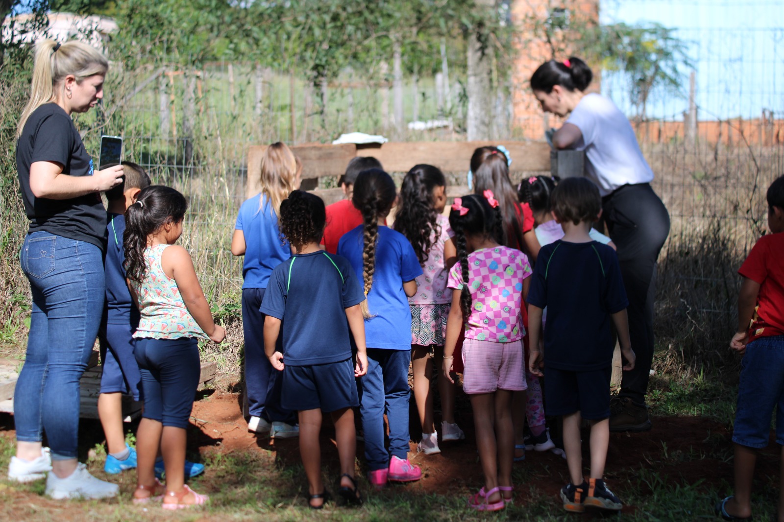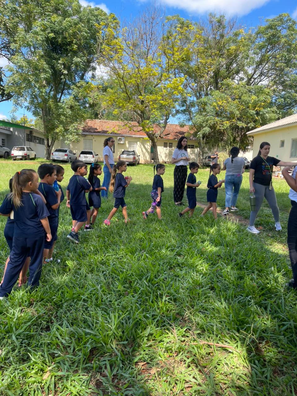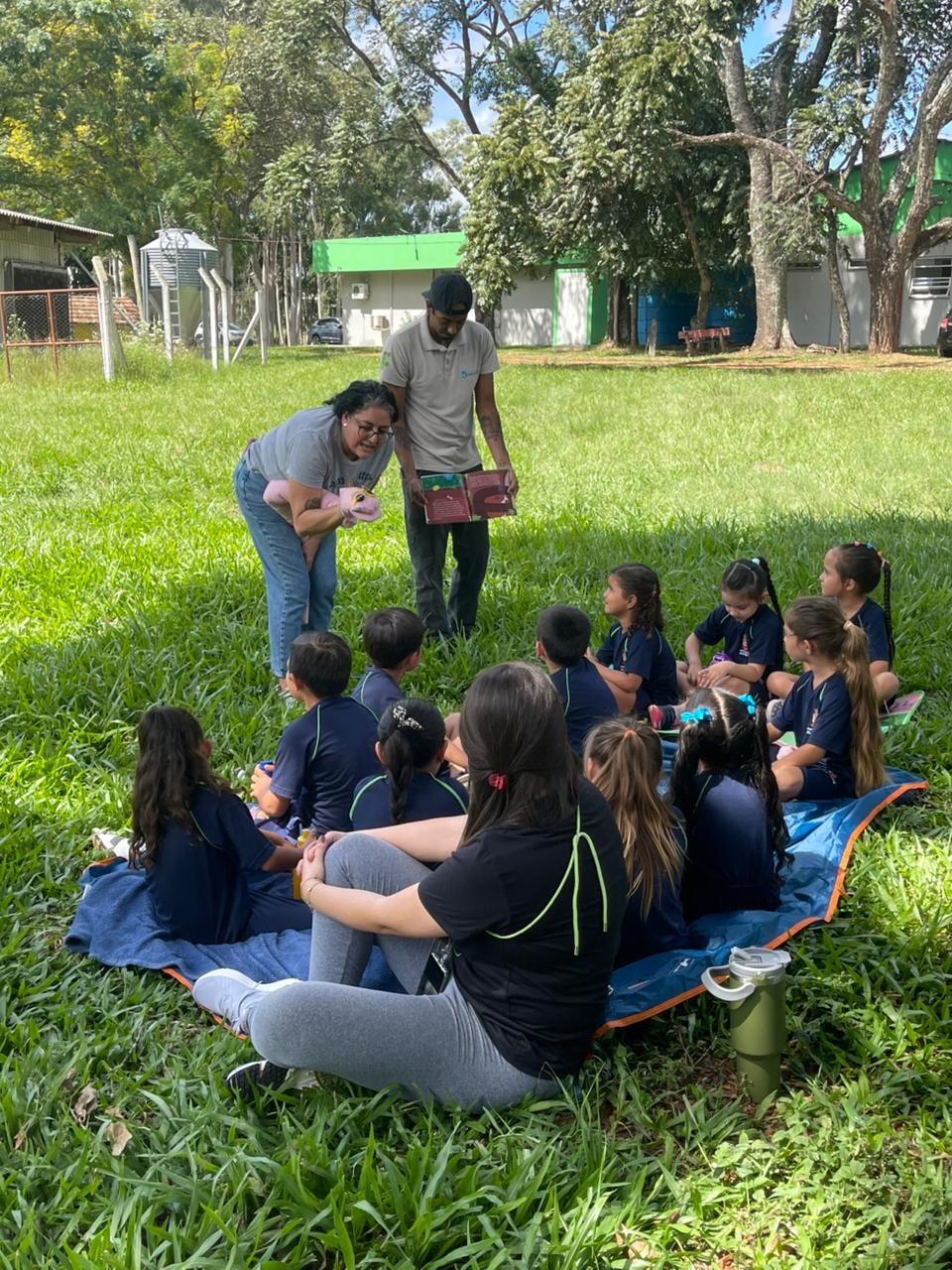 Para a transposição desses conhecimentos às crianças, foi adaptada uma atividade que cativou a atenção dos pequenos: a contação da história “Minhoca Milu: a natureza está onde você pisa!”, escrita por Fabiana da Conceição e ilustrada por Rosália Sanábio de Oliveira, foi encenada com o uso de um personagem-fantoche. A ação tornou o momento mais lúdico e ampliou significativamente a aprendizagem sobre o papel das minhocas e de outros organismos na decomposição da matéria orgânica. O momento também foi marcado por troca significativa entre alunos e professores. Em seguida, juntamente com as crianças, foi coletado o composto de uma leira que já havia concluído o ciclo de compostagem. Os estudantes puderam manusear o composto com as próprias mãos e levar o adubo para análise dos organismos com o uso de lupas..