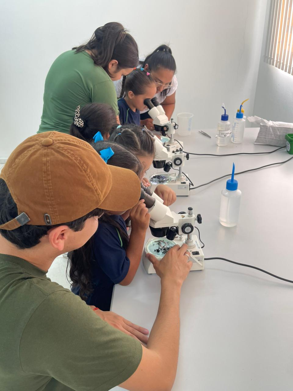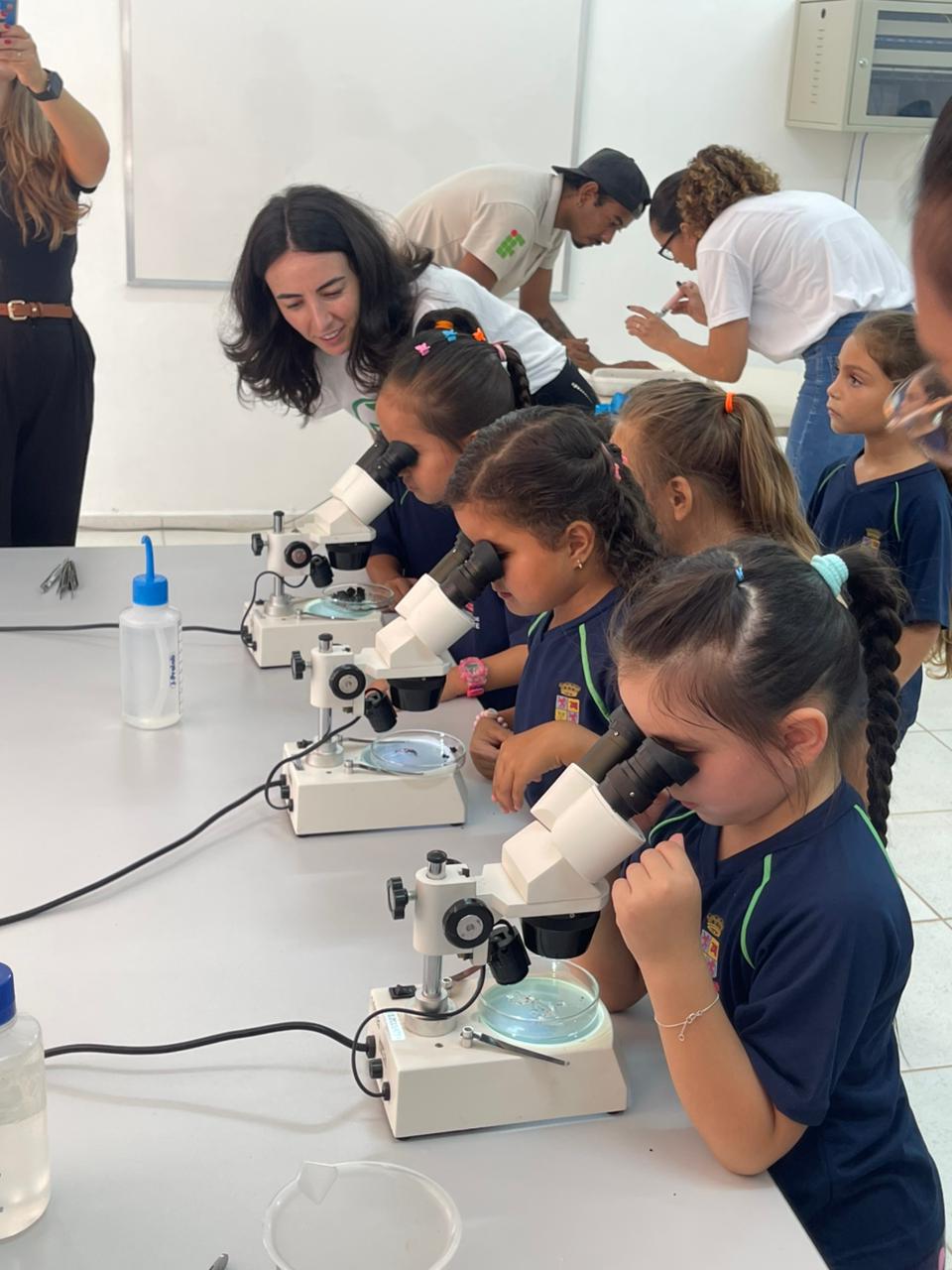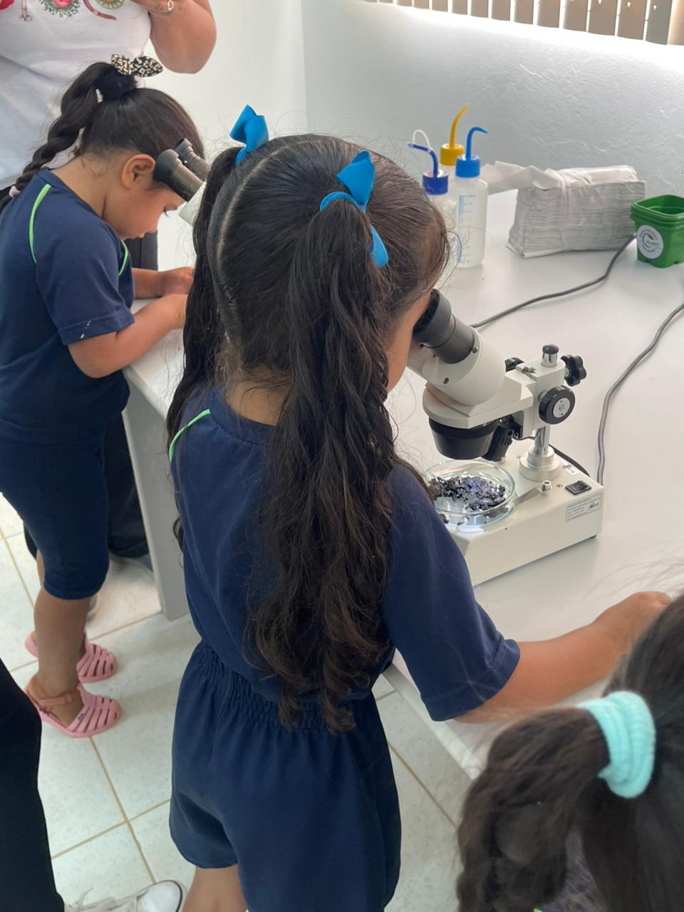 Para a transposição desses conhecimentos às crianças, foi adaptada uma atividade que cativou a atenção dos pequenos: a contação da história “Minhoca Milu: a natureza está onde você pisa!”, escrita por Fabiana da Conceição e ilustrada por Rosália Sanábio de Oliveira, foi encenada com o uso de um personagem-fantoche. A ação tornou o momento mais lúdico e ampliou significativamente a aprendizagem sobre o papel das minhocas e de outros organismos na decomposição da matéria orgânica. O momento também foi marcado por troca significativa entre alunos e professores. Em seguida, juntamente com as crianças, foi coletado o composto de uma leira que já havia concluído o ciclo de compostagem. Os estudantes puderam manusear o composto com as próprias mãos e levar o adubo para análise dos organismos com o uso de lupas..