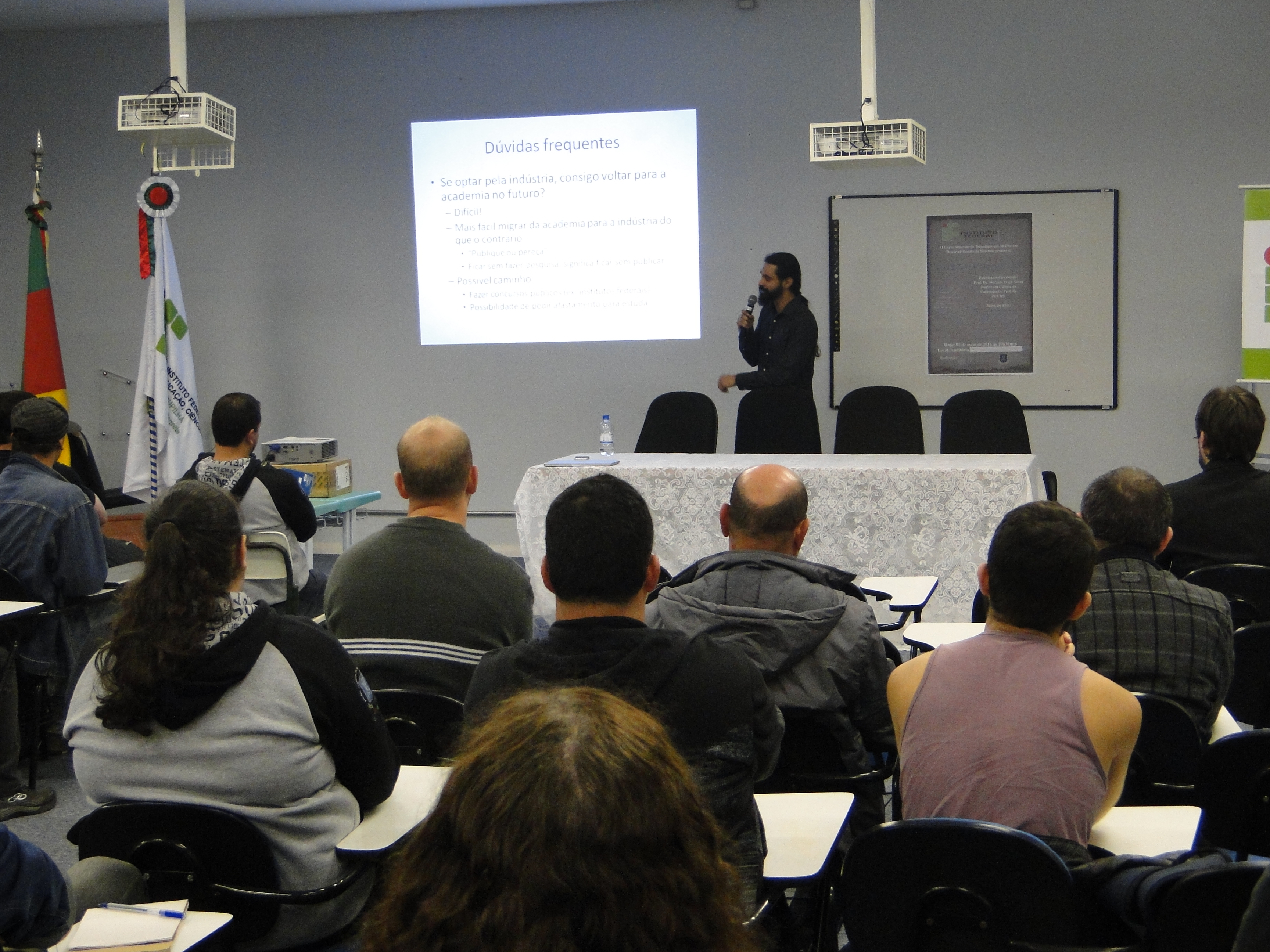 Na segunda-feira, dia 02, aconteceu no auditório central do Campus, a I Aula Magna de ADS, evento este realizado pelo Diretório Acadêmico (DADS) e Coordenação do Curso de Análise e Desenvolvimento de Sistemas. Na ocasião, foi convidado o Prof. Dr. Marcelo Veiga Neves, Professor Adjunto e Pesquisador do Laboratório de Alto Desempenho (LAD) da Pontifícia Universidade Católica do Rio Grande do Sul - PUCRS. Ele palestrou durante a noite sobre as diferenças entre se trabalhar no meio acadêmico e na "indústria" do desenvolvimento de software básico e a possibilidade de se conciliar os dois. Foi uma noite de grandes aprendizados e trocas de experiências, onde se fizeram presentes alunos do curso, do ensino técnico, Professores e TAE's do Campus.