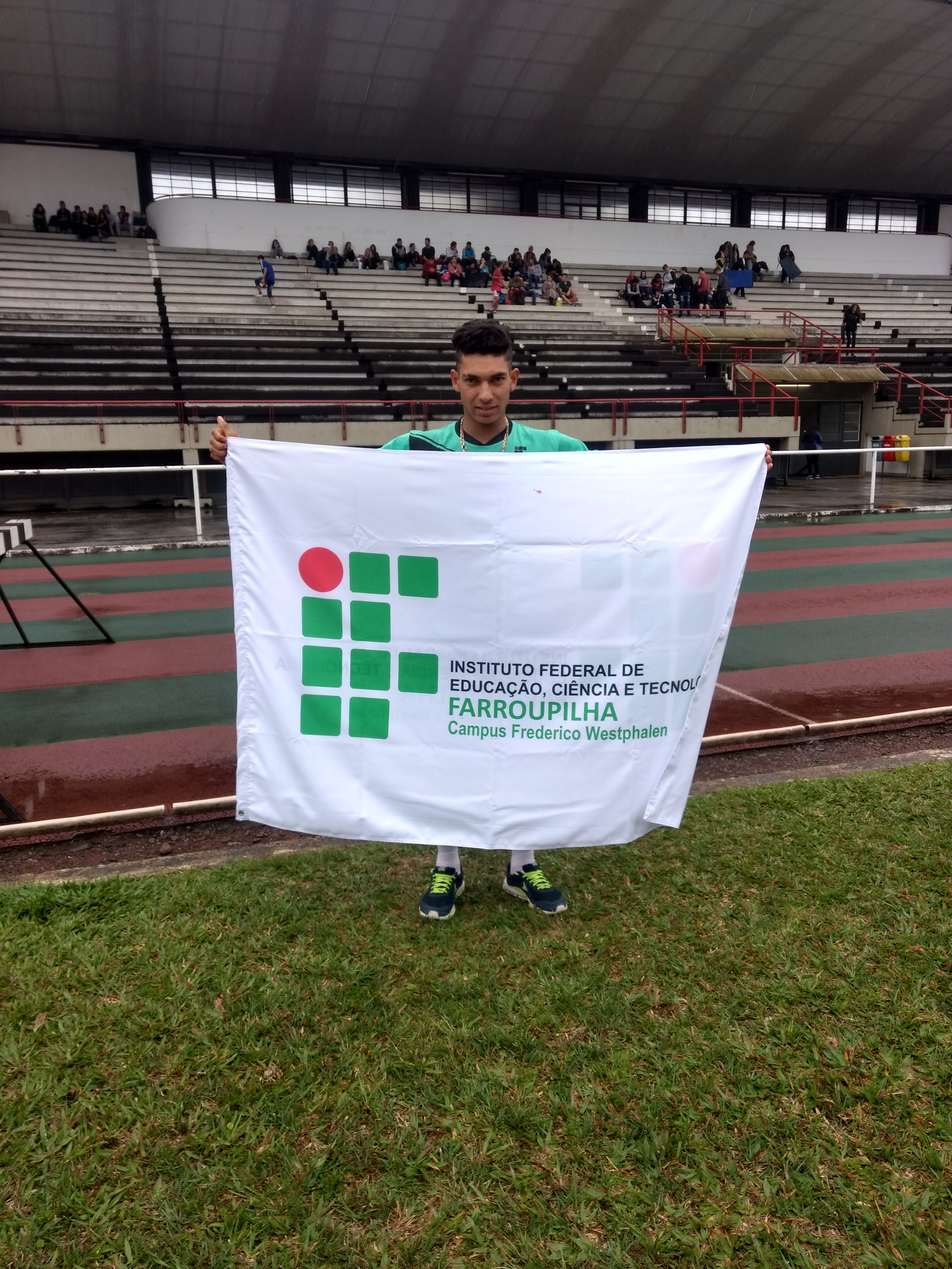 Nos dias 14 e 15 de setembro, o aluno Iran Pinheiro da Costa, esteve representando o Instituto Federal Farroupilha - Campus Frederico Westphalen, na final estadual de Atletismo do JERGS 2018, na prova de salto em distância juvenil. O evento ocorreu na Pista Altética da Unisinos, em São Leopoldo. Nesta prova participavam apenas os oito melhores atletas do Estado, classificados pelas fases seletivas de suas Coordenadorias e Regiões. O aluno/atleta terminou a prova com a quinta classificação, motivo de orgulho para a instituição. Na oportunidade, o aluno esteve acompanhado pela professora de Educação Física do IFFar/FW, Daiani Rech.