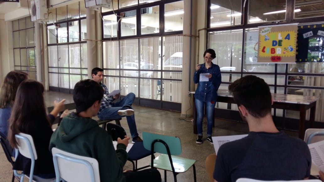 Aula Aberta de Libras com a acadêmica Karine.
