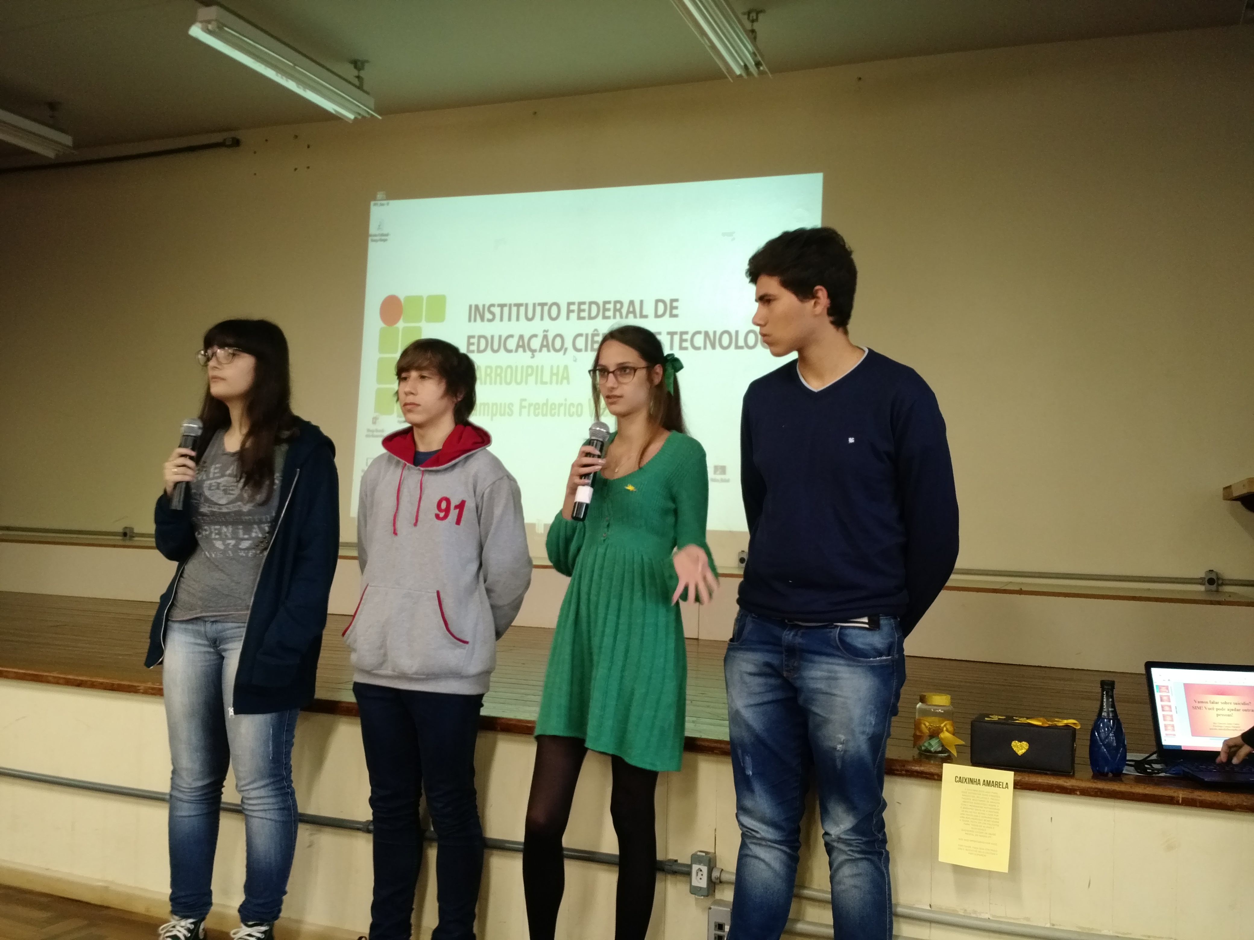 No dia 26 de setembro os estudantes dos cursos diurnos do campus Frederico Westphalen participaram de uma palestra intitulada “Vamos Falar sobre Suicídio? Sim! Você pode ajudar outras pessoas!” com a psicólogo Graciele Dotto Castro do campus de Panambi.