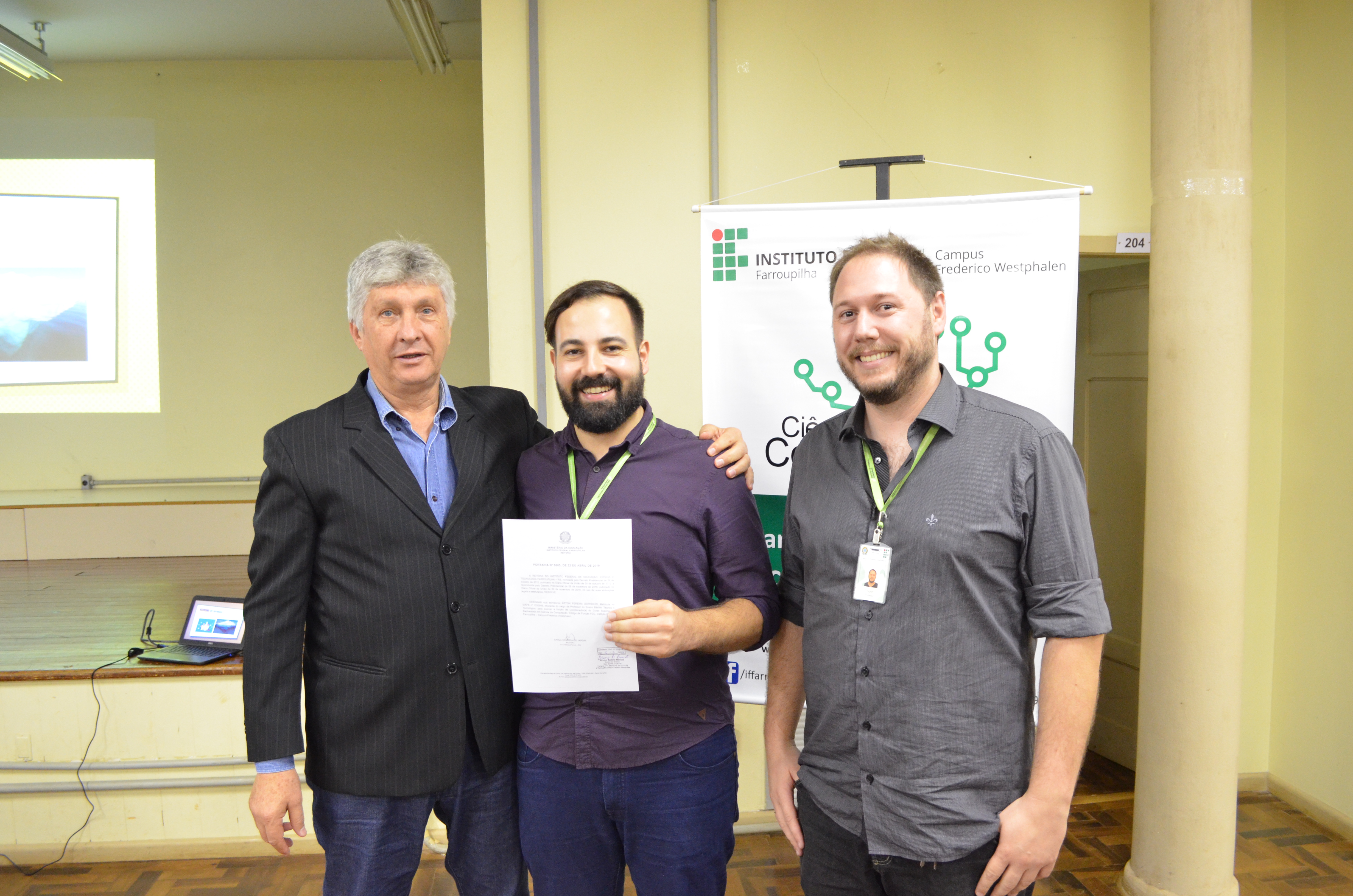 O Prof. Carlos Guilherme Trombetta, diretor geral do Campus, realizou a entrega simbólica da Portaria de Nomeação de Coordenação de Curso ao Prof. Arton Pereira Dorneles. E, em seguida, foi constituído formalmente o primeiro colegiado do curso, bem como o Núcleo Docente Estruturante.