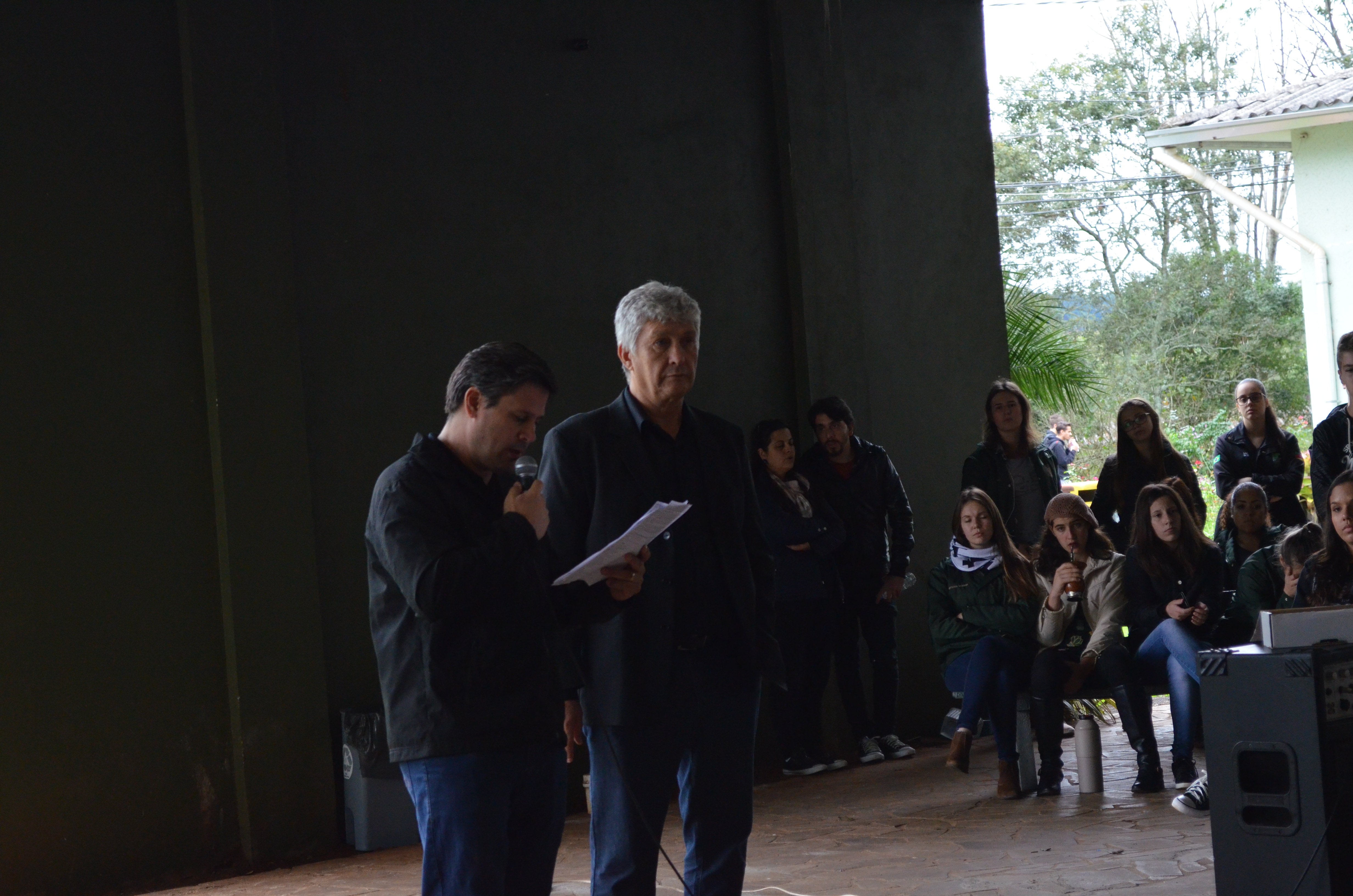 Em seguida, o professor e Diretor de DPDI Deivid Guareschi Fagundes fez a leitura da nota oficial do CONIF e, ao final, o Abraço oficial no campus.