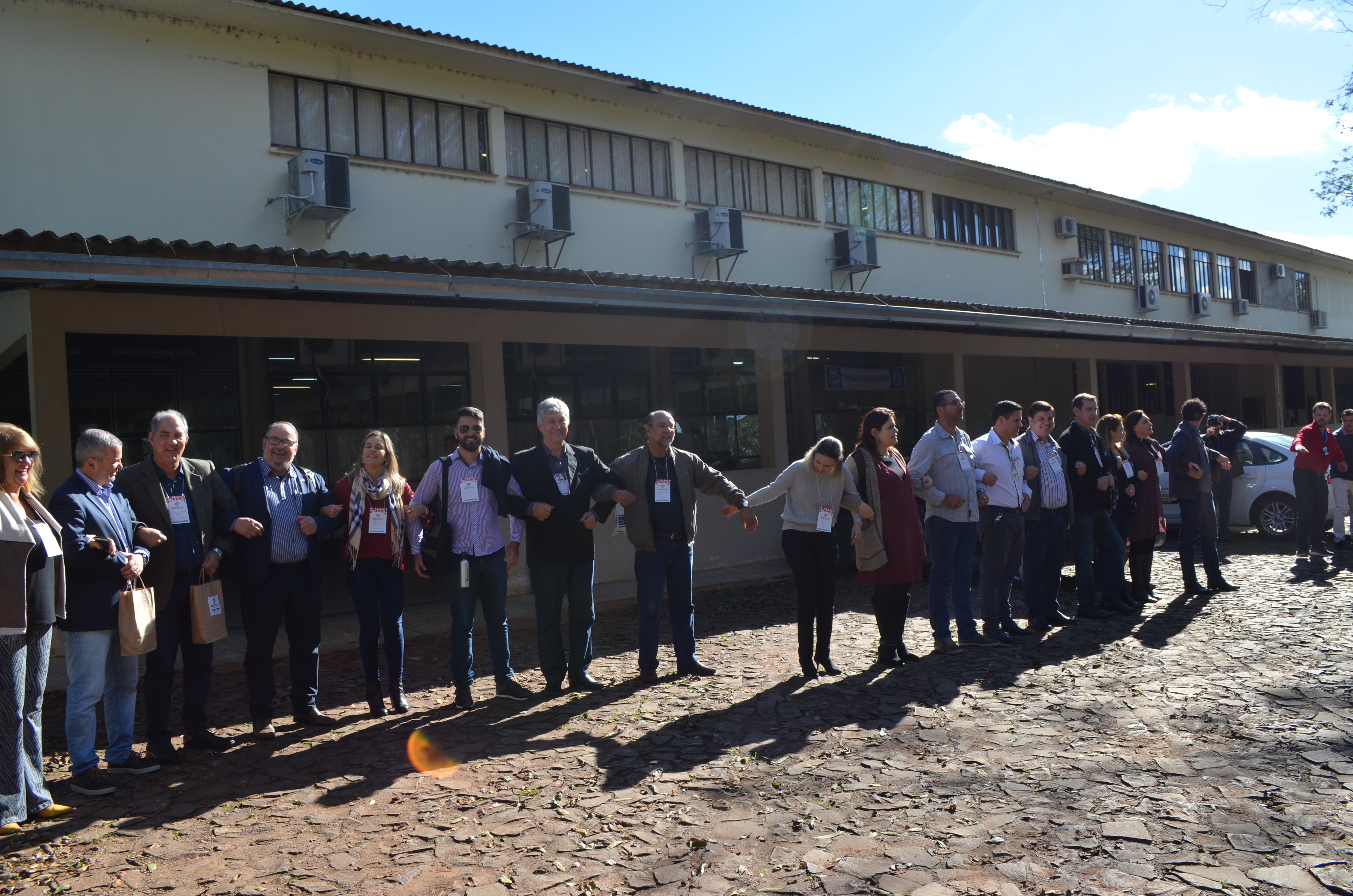 Já no período da tarde, as atividades iniciaram às 13 horas e 30 minutos com uma mobilização institucional dos dirigentes, os quais, fizeram uso do espaço para elencar ações importantes do contexto atual e recordar o fortalecimento e sustentação da Reditec Sul na qualidade de discussão, alinhamento e cooperação para e com a comunidade acadêmica. O momento foi oportuno para uma paralisação, o Ato do Abraço, contra os cortes orçamentais em apoio aos estudantes que se manifestaram, ao longo do dia, no centro da cidade.
