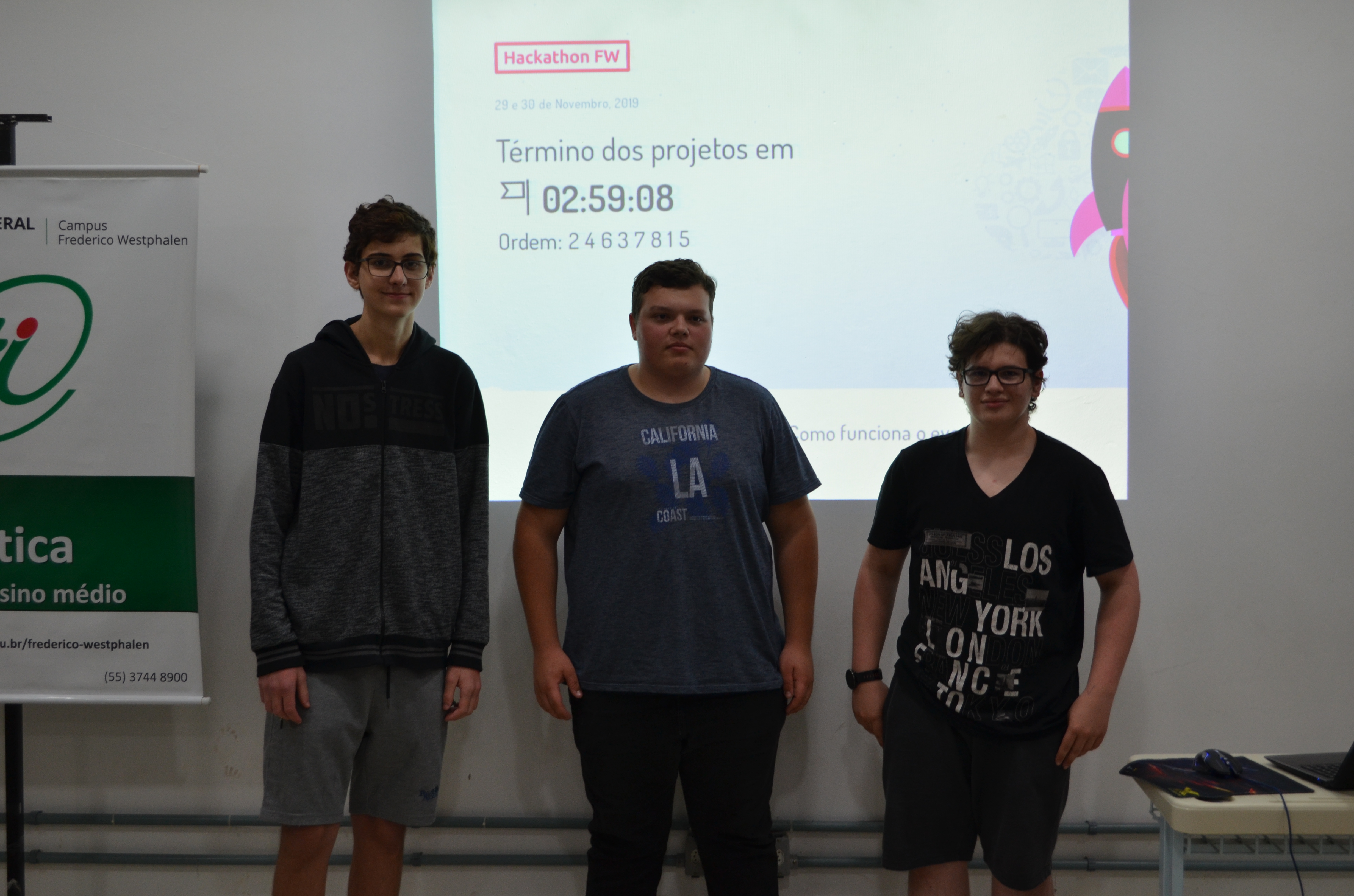 O Hackathon 2019 foi um evento coordenado pelo professor Árton Pereira Dorneles e contou com uma ótima estrutura técnica que permitiu a transmissão ao vivo via Facebook durante toda a programação, além do apoio da Casa das Cucas, a qual forneceu o café da manhã para todos os participantes e comissão técnica do evento.