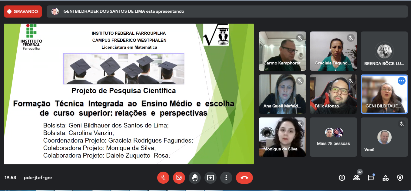 Na ocasião, o curso de Licenciatura em Matemática desenvolveu duas atividades com foco na formação acadêmica. A primeira consistiu de uma mesa redonda, com três doutorandos e egressos de cursos de Licenciatura em Matemática do IFFar e, a segunda, o relato de bolsistas do curso que estão envolvidos no desenvolvimento de projetos de ensino, pesquisa e extensão.