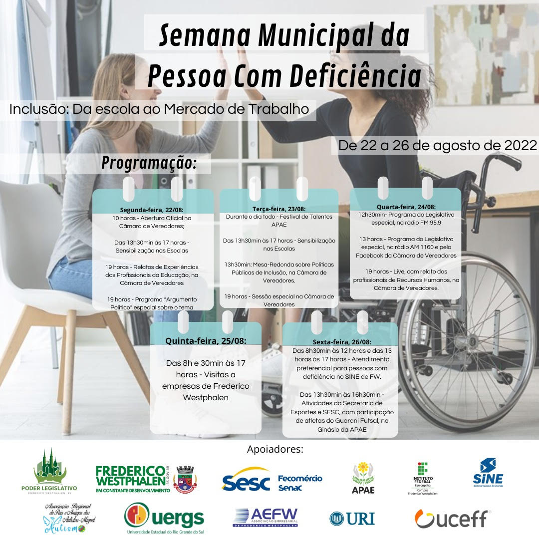 Está acontecendo nesta semana no município de Frederico Westphalen a Primeira Semana Municipal da Pessoa com Deficiência!