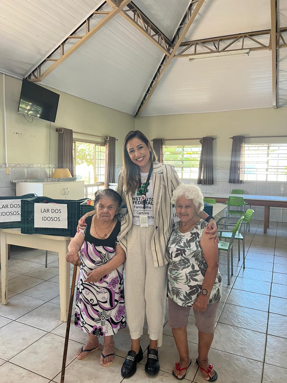 Profa. Anieli e estudante Larissa junto com a equipe do Lar dos Idosos São Vicente de Paulo