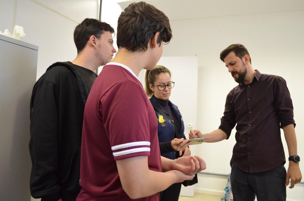 Inicialmente os estudantes foram conduzidos ao Laboratório IF MAKER, no prédio do curso de Ciência da Computação, onde tiveram a possibilidade de observar como funciona o processo de impressão em 3D. Após, foram conduzidos para o prédio do curso de Medicina Veterinária onde realizaram um tour pelos espaços, e puderam observar os diversos setores destinados ao atendimento e cuidado de animais. Na sequência os estudantes puderam participar de oficinas práticas no laboratório do curso de Licenciatura em Matemática.