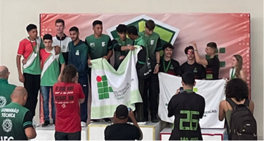 - equipe de xadrez masculino, composta por José Luiz Buzatto Kunz, Kauã Picolli Barbosa, Gilian Pietrzacka Marques e Daniel Casarin da Rosa, orientados por nosso colega Eduardo Ribeiro Albuquerque, assistente de alunos do campus, profissional de Educação Física por formação, e coordenador do projeto de xadrez;