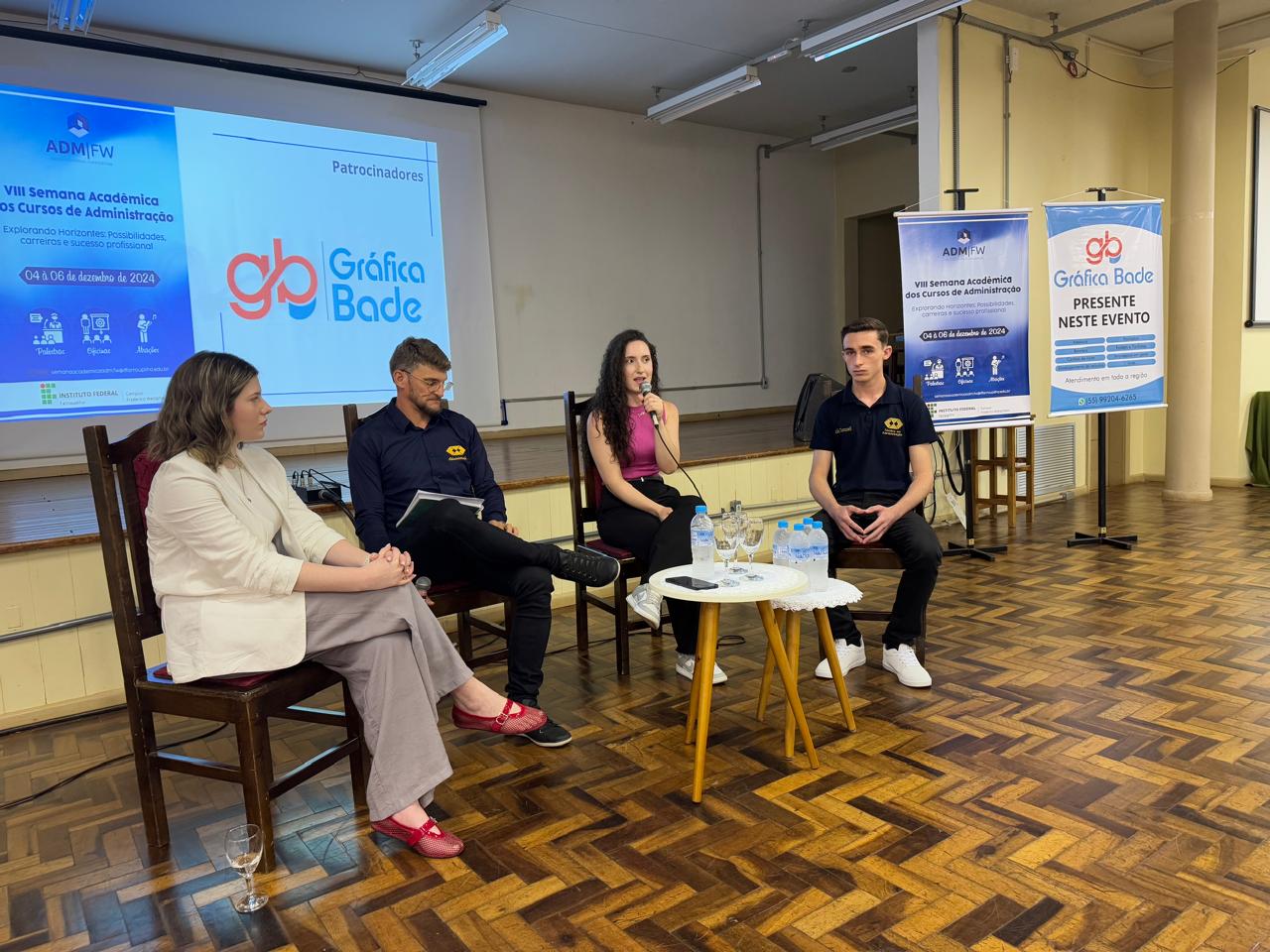 No segundo dia do evento, 05 de dezembro, no turno da manhã, aconteceu a “Roda de Conversas: Preparação para o Mercado – Possibilidades e Trajetórias em Administração”, destinada aos estudantes do Curso Técnico Integrado em Administração. Deste modo, esta atração contou com a participação das egressas do Curso Técnico Integrado em Administração, Clara Raimondi e Evellyn Balestrin, bem como com a participação do estudante da Turma 35, João Rabaioli e a mediação do professor Volmir Rabaioli.