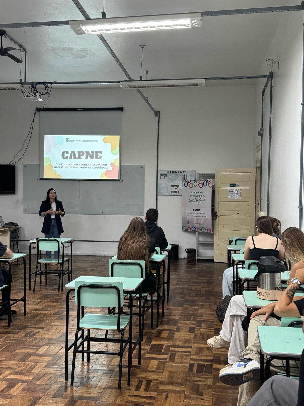 - Explanação da servidora Angélica Pozzer sobre a Coordenação de Apoio a Pessoas com Necessidades Educacionais Específicas (CAPNE);