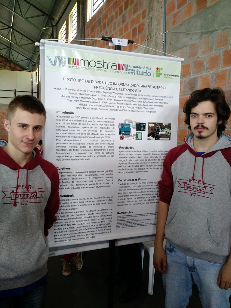 Arthur Stefanello Munaretto e Francis Fabris Facin com o projeto Protótipo de Dispositivo Informatizado para Registro de Frequência utilizando RFID