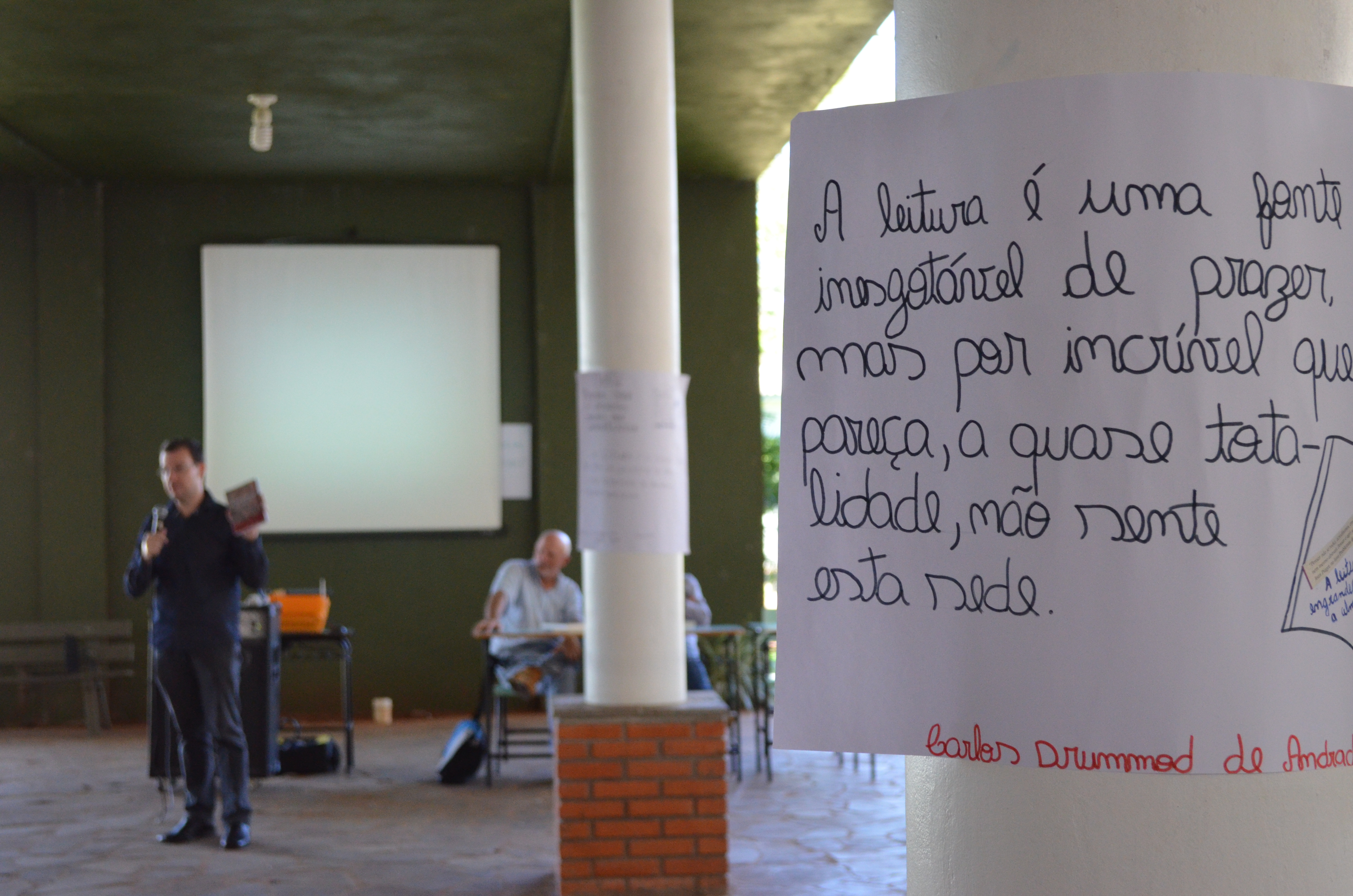 O projeto “Diálogos com a Literatura” é coordenado pela professora Luciane Figueiredo Pokulat e executado pelos docentes da área de Códigos e Linguagens do Campus, tem o objetivo de proporcionar momentos e espaços para a leitura do texto literário e as relações com outras linguagens. Como uma ação do projeto, os alunos foram desafiados por seus professores de Língua Portuguesa e Literatura a lerem ao menos um livro durante o mês.