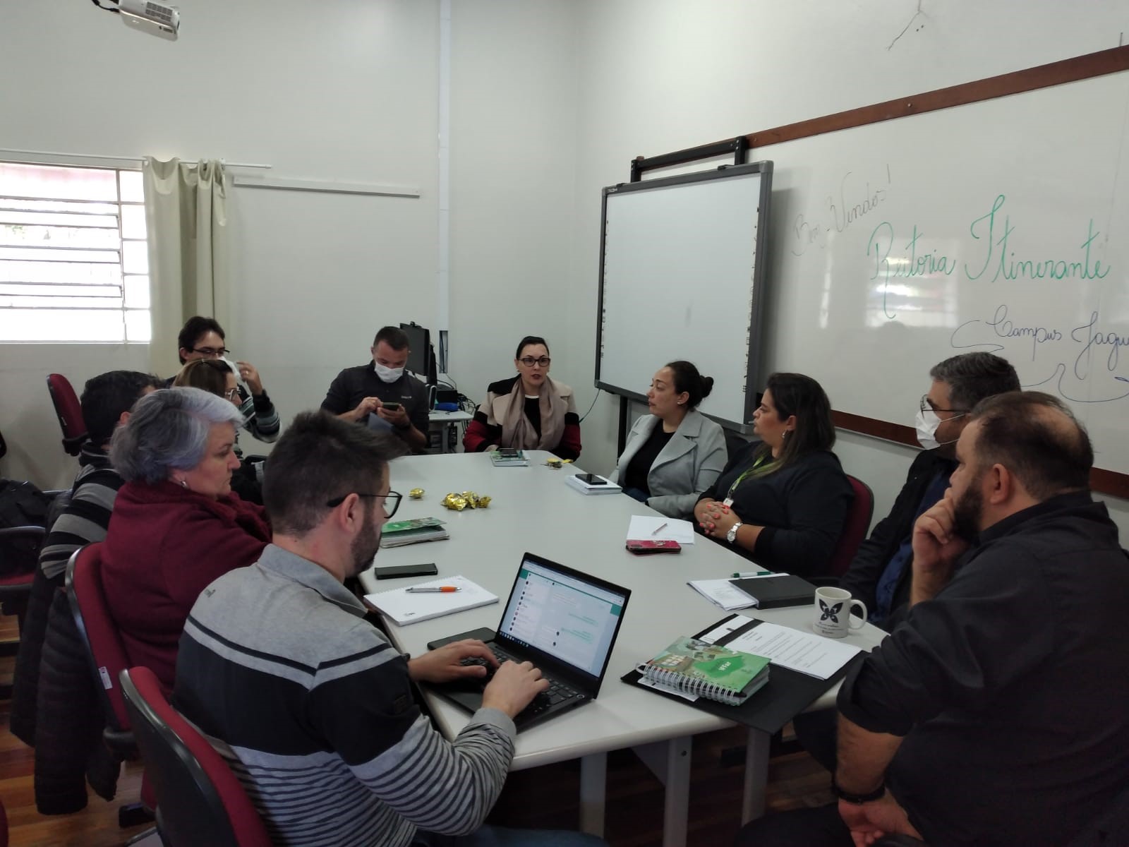 Na tarde do dia 24/05 aconteceu no IFFar Campus Jaguari e na manhã do dia 25/05 no CR Santiago, a Reitoria Itinerante, evento esse que oportuniza a escuta e diálogos com Equipe Diretiva da Reitoria do IFFar. Estiveram presentes a Reitora do Instituto Federal farroupilha Profª Nídia Heringer, Pró-Reitora de Desenvolvimento Institucional: Carlos Rodrigo Lehn; Pró-Reitora de Administração: Mirian Rosani Crivelaro Kovhautt; Pró-Reitor de Ensino: Renato Xavier Coutinho; Pró-Reitor de Pesquisa, Pós-graduação e Inovação: Arthur Frantz e Chefe de Gabinete Reitoria Dalva.