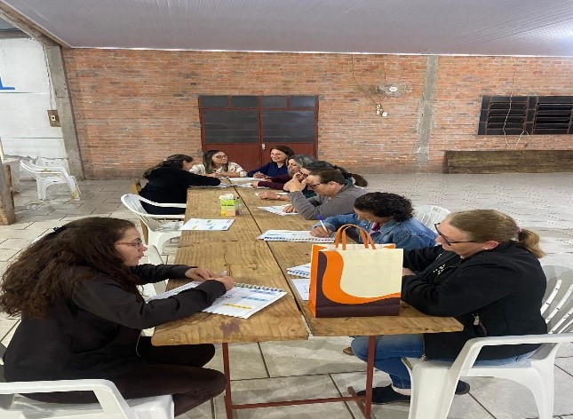 No último dia 07/11/2024 foi realizada a atividade inaugural do curso de Masseira, vinculado ao Programa Mulheres Mil.A atividade foi realizada no Clube da Capela São Pedro de Igrejinha, 3° distrito de Jaguari. A atividade contou com cerimônia de abertura, apresentação do curso pela coordenadora local, Laís Perin, palestra e dinâmica em grupo realizada pela assistente social do Campus Arícia Costa de Oliveira, e ao final contou ainda com uma confraternização entre as participantes.