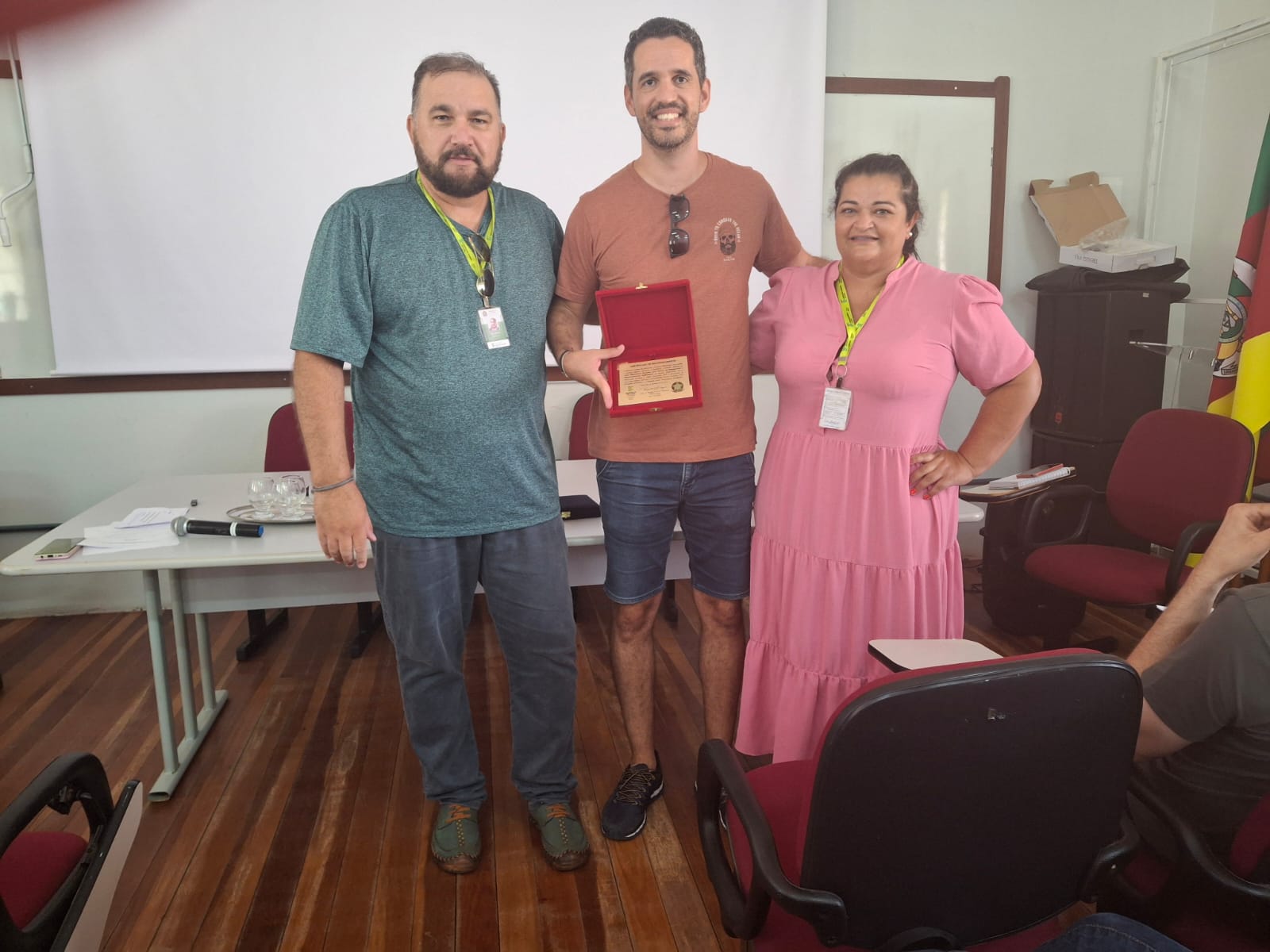 Na tarde de terça-feira, 11 de fevereiro, os diretores sistêmicos da gestão 2021-2025 foram homenageados pelo trabalho realizado durante a gestão 2021-2025, em uma cerimônia promovida pelo Diretor Geral do campus Jaguari, Ricardo Antonio Rodrigues. Durante o evento, Ricardo destacou a importância do trabalho em equipe, enfatizando que uma gestão eficaz não é realizada isoladamente, e que o esforço e dedicação de cada diretor foram fundamentais para o desenvolvimento de diversas ações ao longo desse período. Foram homenageados a Diretora de ensino Marielle Medeiros de Souza, o Diretor de Desenvolvimento e Planejamento e Desenvolvimento Institucional Lucas Maximiliano Monteiro, Diretor de Pesquisa, Extensão e Produção Vinícius Soares Sturza e o Diretor de Administração Romerson Seidel Gibicoski.
