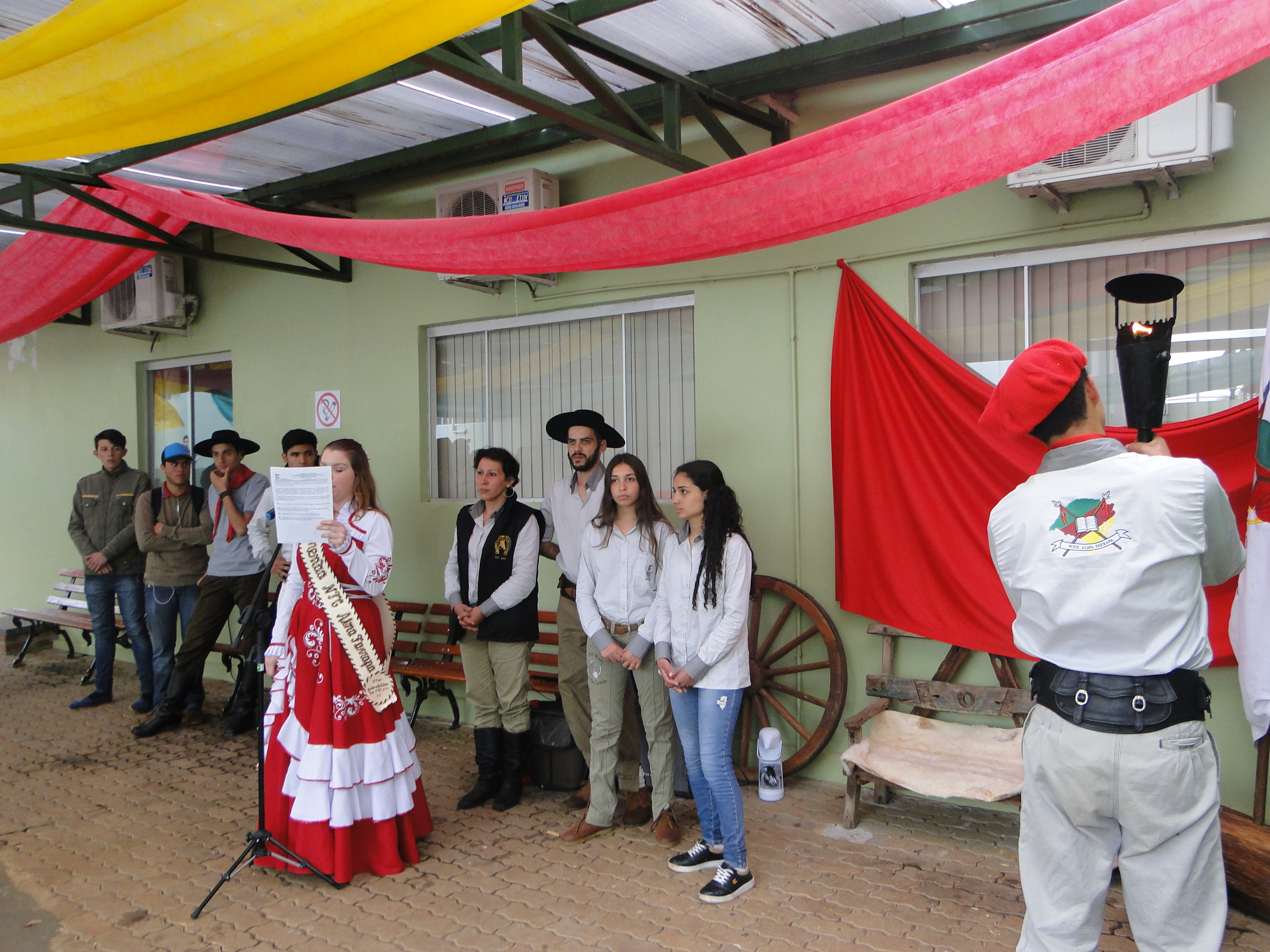 Durante a semana, a chama ficará no pátio de convivência, onde foi organizado o Recanto Farroupilha do Campus. O NTG Alma Farrapa organizou a programação com palestras, café campeiro, intervenções culturais nas escolas do município e no Campus. E, encerra os festejos farroupilhas participando do desfile no dia 20 de setembro. Mais informações podem ser obtidas na fun page do Grupo: https://www.facebook.com/ntgalma.farrapa.12.