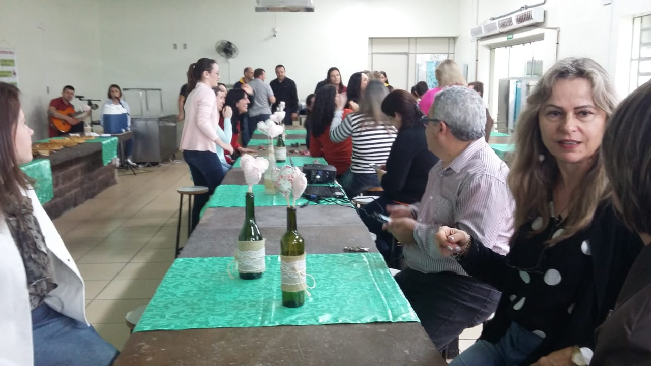 Na quarta-feira, (10), os servidores do Campus Júlio de Castilhos reuniram-se no Refeitório para comemorar o dia do professor. durante o café promovido pela direção, foi apresentado um vídeo em homenagem aos docentes e a apresentação musical dos estudantes Luciana Rodrigues Vieira e Rogemar da Rosa Baltezam, vencedores da Mostra Cultural.