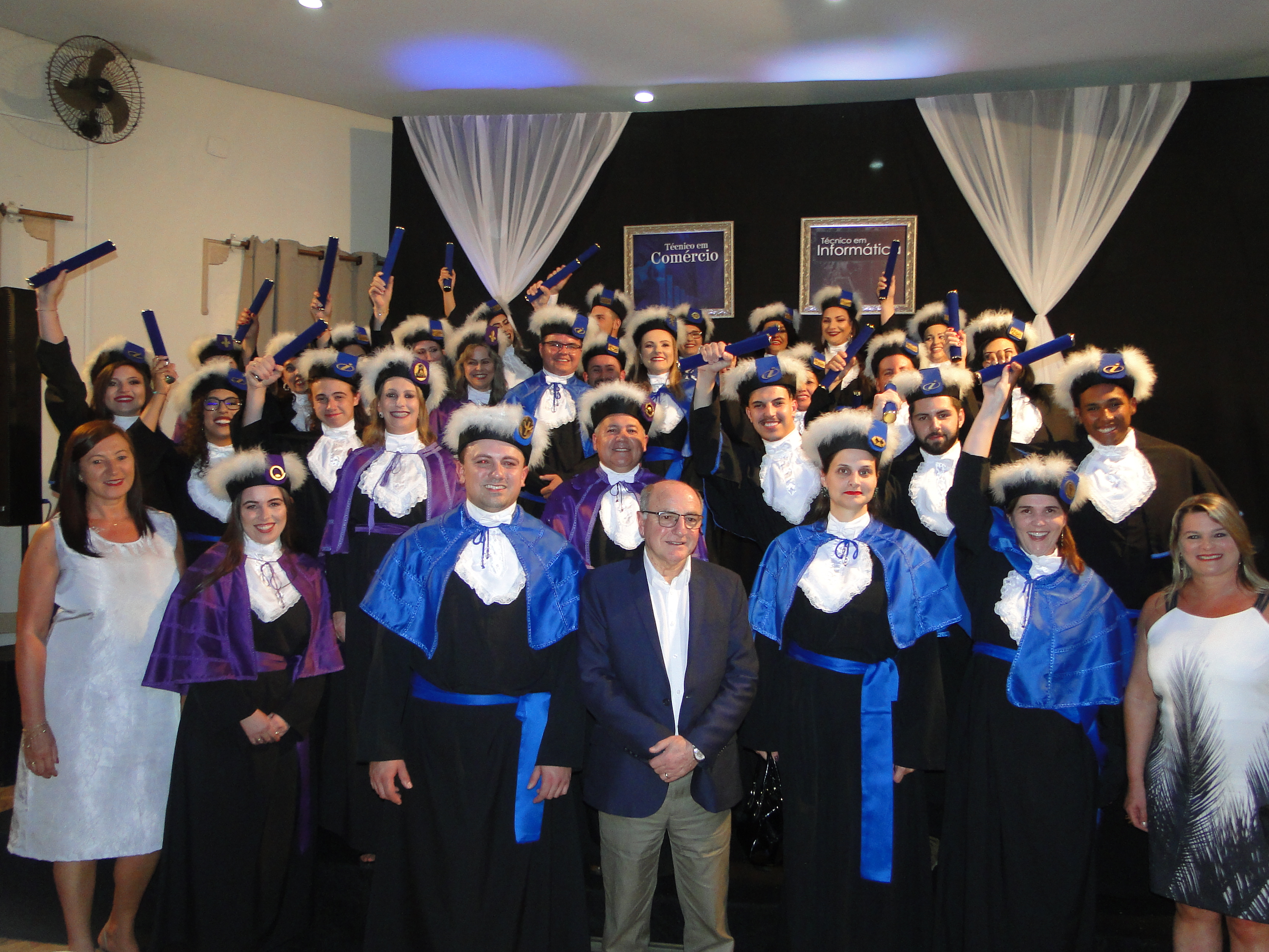 Hoje, (21) aconteceu a solenidade de diplomação dos cursos técnicos integrados ao ensino médio de Informática e Comércio, modalidade Proeja. A cerimonia foi no Clube União e reuniu familiares, docentes, técnicos administrativos e , contou com a presença do prefeito municipal, João Vestena e da secretária de educação, Rosemari Montagner Casarin.