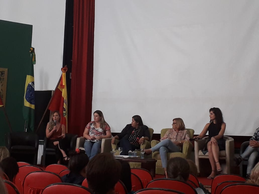 A Professora Sofia Aumond Kuhn, integrante do NUGEDIS JC abordou a temática “Trajetória Histórica da Mulher”, destacando mulheres que lutaram por seus direitos e a evolução da mulher mediante a sociedade.