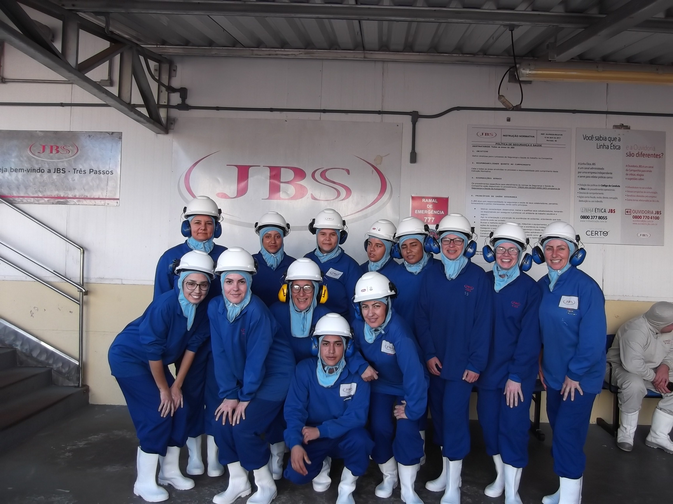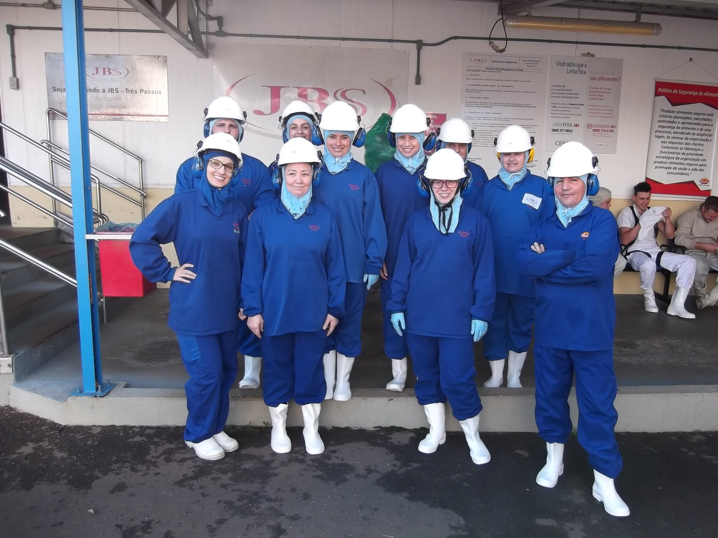 Na cidade de Três Passos visitaram um frigorífico para acompanharem todo o processo desde o abate de suínos até a produção e expedição do presunto.