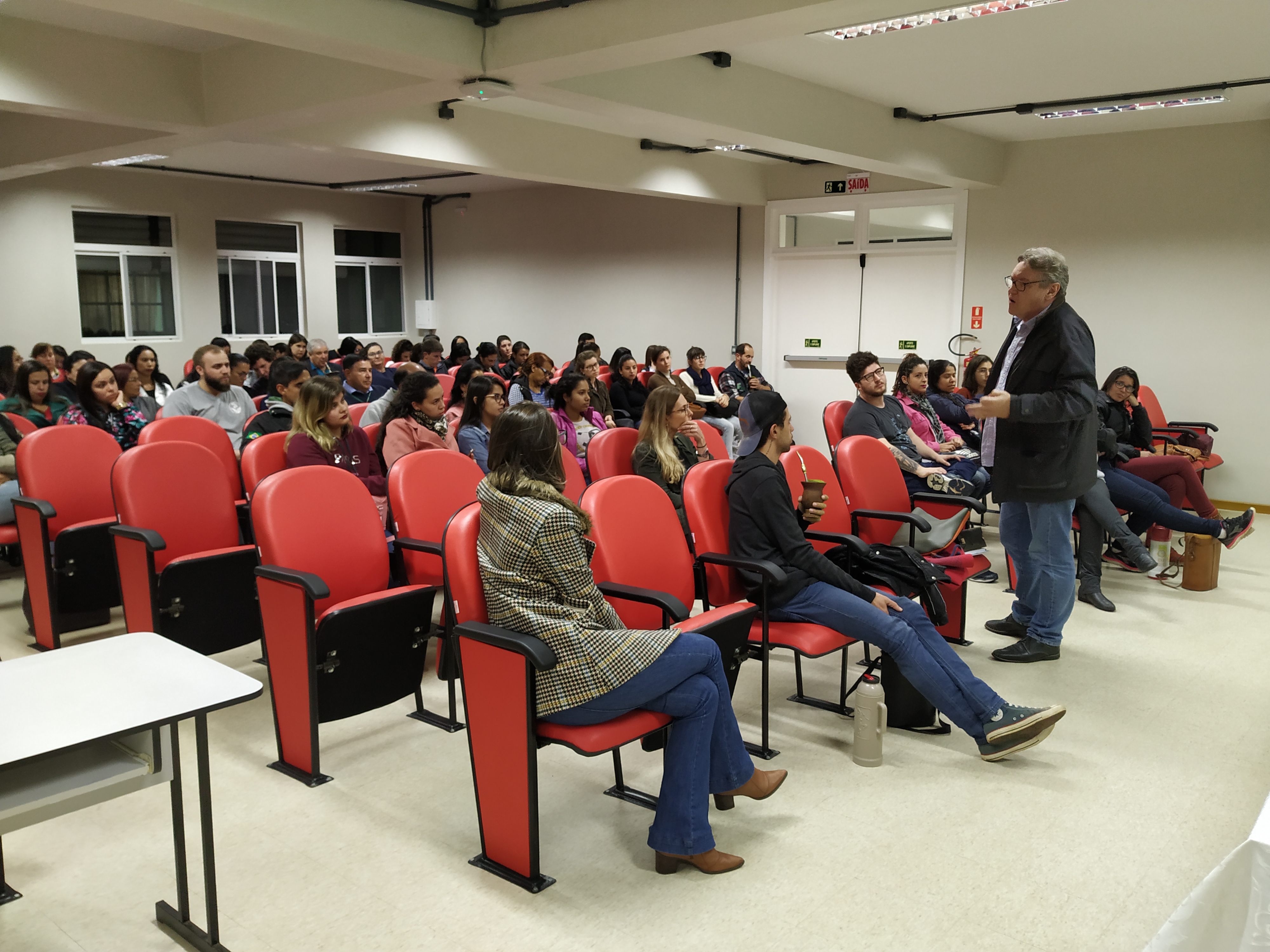 No encerramento das atividades, o professor Jorge Luiz da Cunha da Universidade Federal de Santa Maria (UFSM) proferiu a palestra “A educação, pesquisa e conhecimento: construção da unidade humana no conhecimento da diversidade”. Além dos alunos da Licenciatura em Ciências Biológicas, também estiveram presentes alunos da Licenciatura em Matemática e da Especialização em Gestão Escolar.