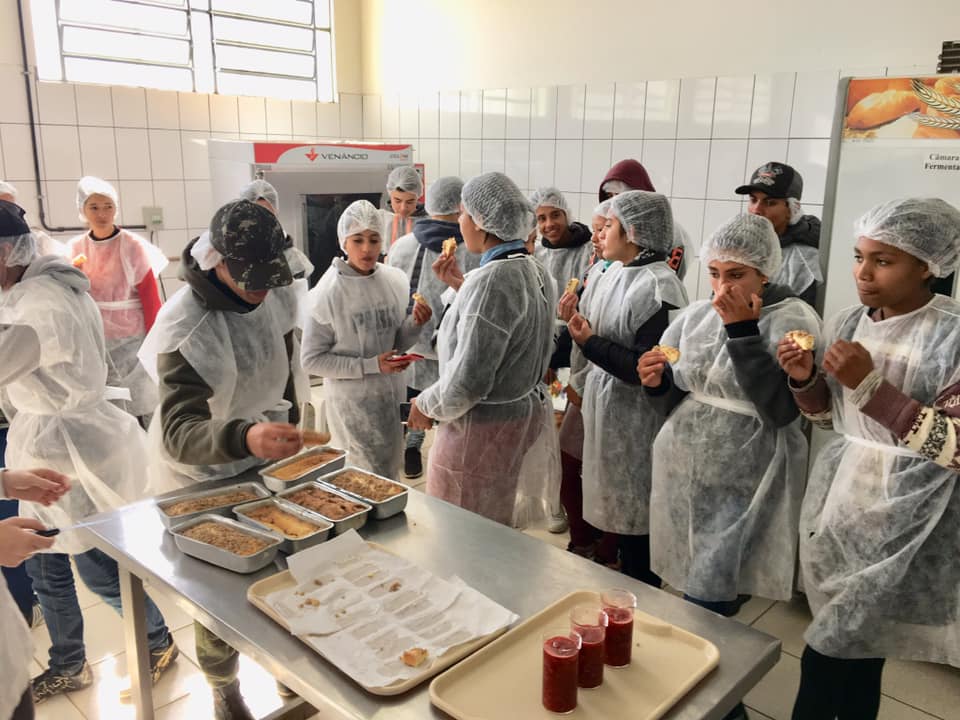 Oprojeto de extensão Fortalecendo o Programa de Aceleração da Aprendizagem do município de Júlio de Castilhos, recebeu ontem (21) estudantes da rede municipal das escolas Visconde de Mauá e Casemiro de Abreu para oficinas de pães e geleias. A atividade foi ministrada pelos profissionais do Eixo de produção Alimentícia do Campus Júlio de Castllhos.