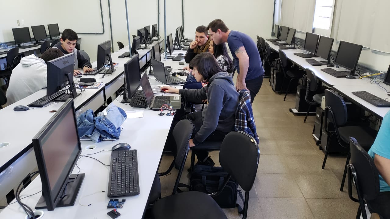No dia 25 a programação contou com 7 oficinas: Hardware, ministrada pelo professor Leonardo Aramburu; Microcontroladores, automação, Internet das coisas(loT), com o professor Luciano Trevisan; App Inventor, com a professora Maria Angélica; Ferramentas google X Ferramentas Microsoft Office/online, ministrada pelos técnicos Cristiano Santos e Felipe Flain; AVEA Moodle, com os técnicos Peter Prevedello e Cristiano Santos e Realidade Virtual e Aumentada, com o professor Eduardo Dalcin.