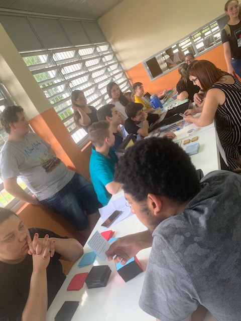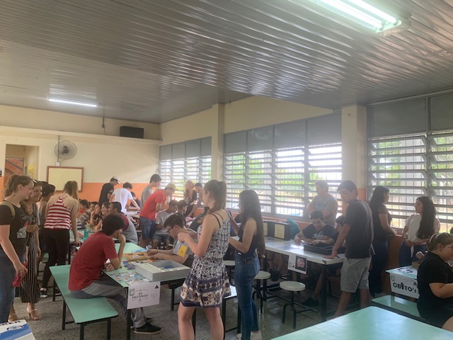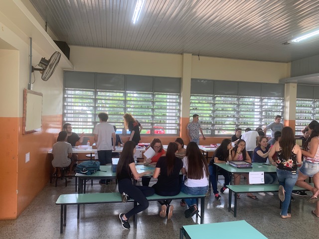 O projeto iniciou em maio desse ano, envolvendo três turmas de primeiro ano da escola IEE Vicente Dutra, turno da tarde e com os estudantes da disciplina de Fundamentos da Informática aqui do IFF - CTI.