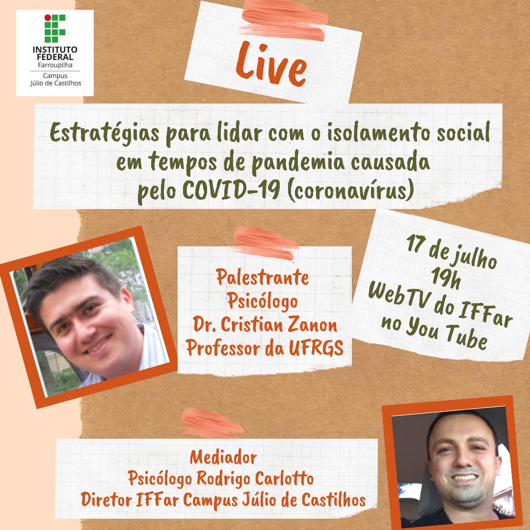 A semana de 13 a 17 de julho está repleta de atividades extracurriculares para os estudantes do Iffar Campus Júlio de Castilhos. No programa temos o Ciclo de debates IFFar e mais uma edição do Diálogos em Rede, lives, seminários, palestras, além, das revisões orientadas para os estudantes dos cursos técnicos em Agropecuária e Comércio.