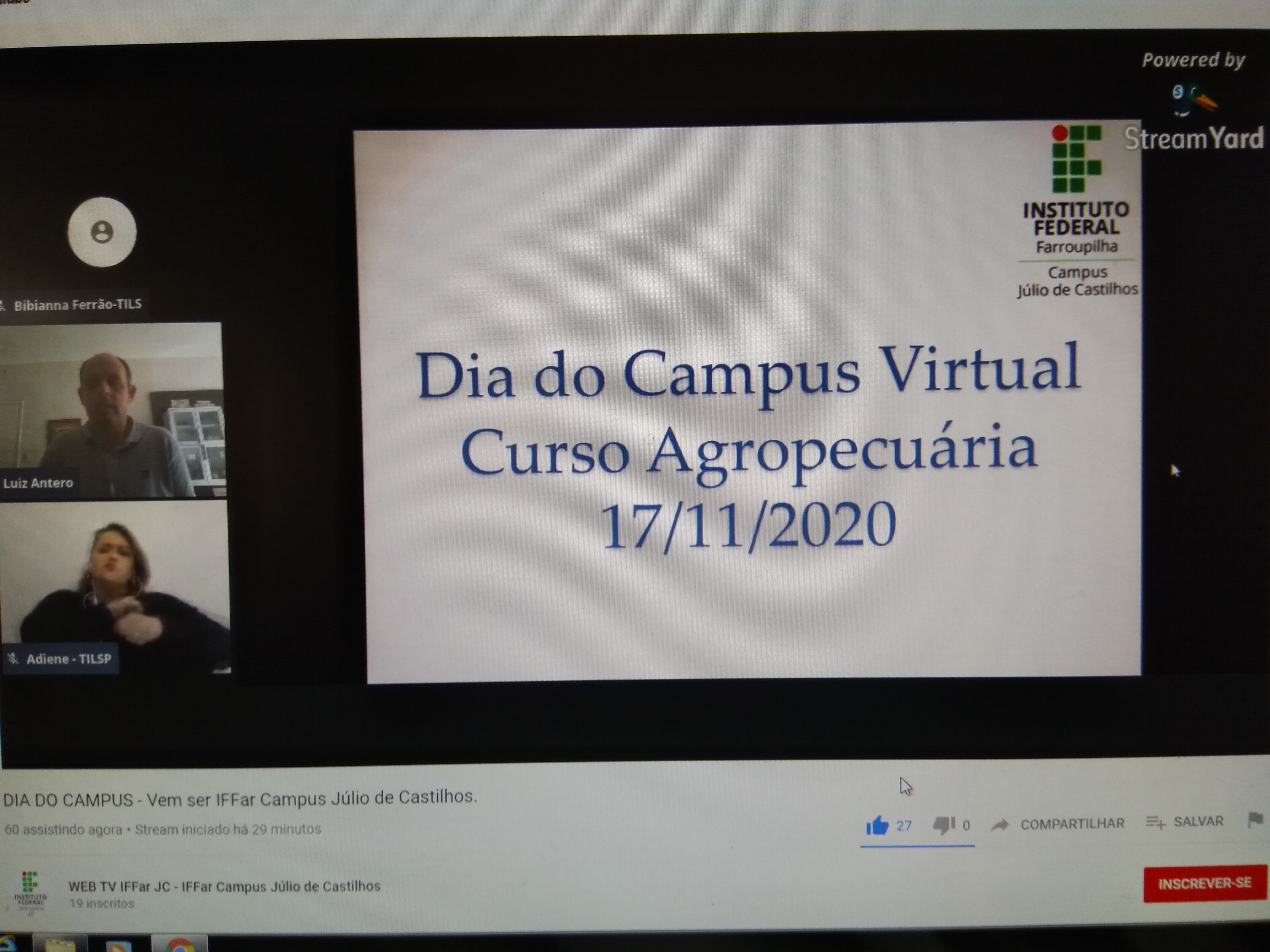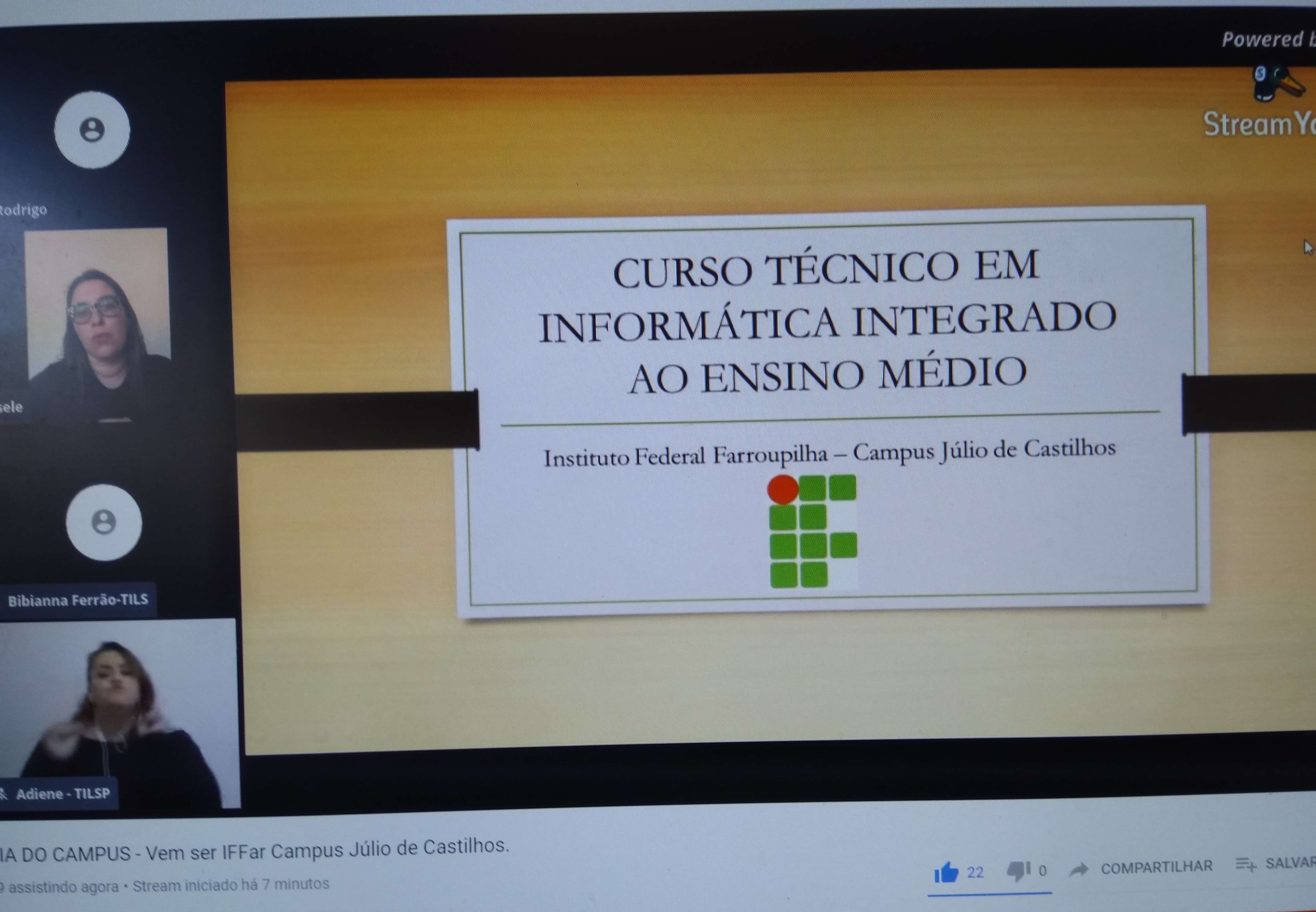 A atividade apresentou os cursos técnicos integrados ao ensino médio de Agropecária e Informática aos concluintes do ensino fundamental do municipio de Júlio de Castilhos através de uma live, transmitida pelo canal d IFFar Campus JC. Os coordenadores dos cursos técnicos integrados ao ensino médio de Agropecuária, professor Luiz Antero Peixoto e de Informática, professora Gisele Paim mostraram as estruturas curricular e física dos cursos. Através das fotos e vídeos os futuros estudantes puderam conhecer um pouco mais do Campus JC. Além disso, estudantes e egressos deixaram seus depoimentos sobre suas experiências na instituição.