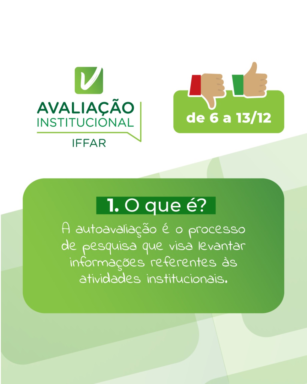 Sobre a avaliação - A autoavaliação é um processo de caráter diagnóstico, formativo e coletivo para identificar o perfil institucional e o significado de sua atuação por meio das atividades de ensino, pesquisa e extensão. Atende aos princípios da lei nº 10.861/2004 que criou o Sistema Nacional de Avaliação do Ensino Superior (Sinaes).