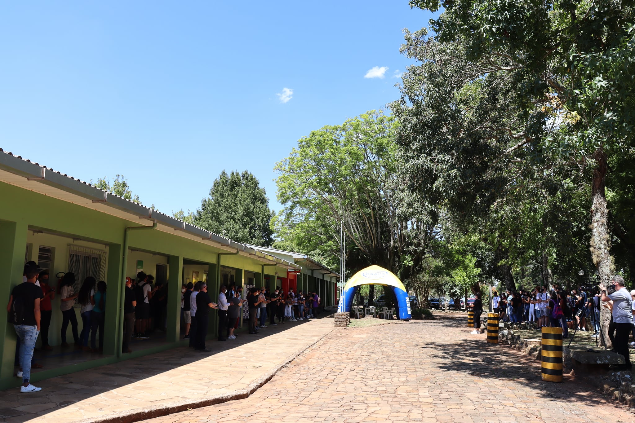 Todo o acolhimento aconteceu no hall do antigo prédio administrativo, onde o Diretor Geral Rodrigo Carvalho Carlotto e as coordenações dos cursos deram as boas vindas aos(as) estudantes. A programação de acolhida contou com a presença da equipe diretiva, docentes, técnico-administrativos e comunicadores da Rádio 14 de Julho.