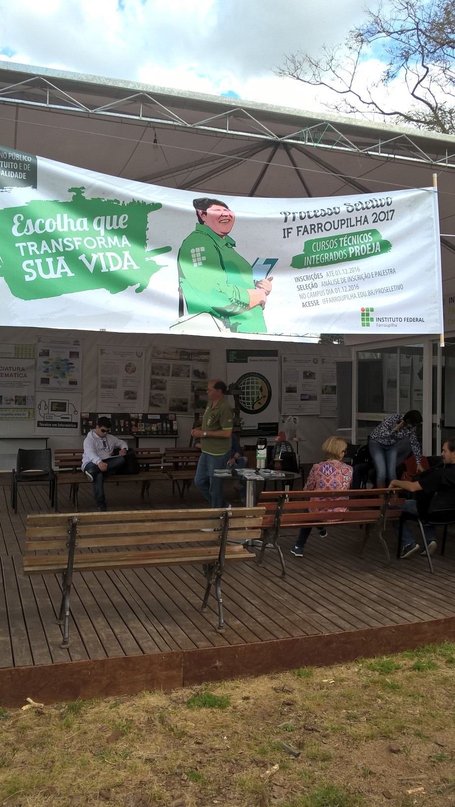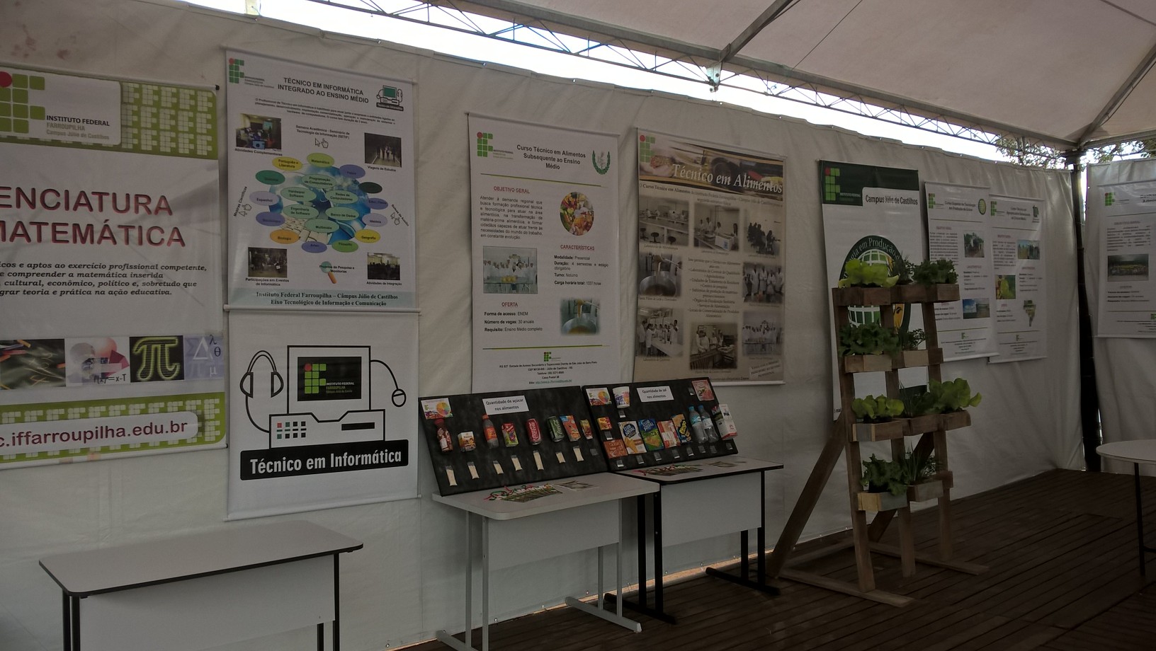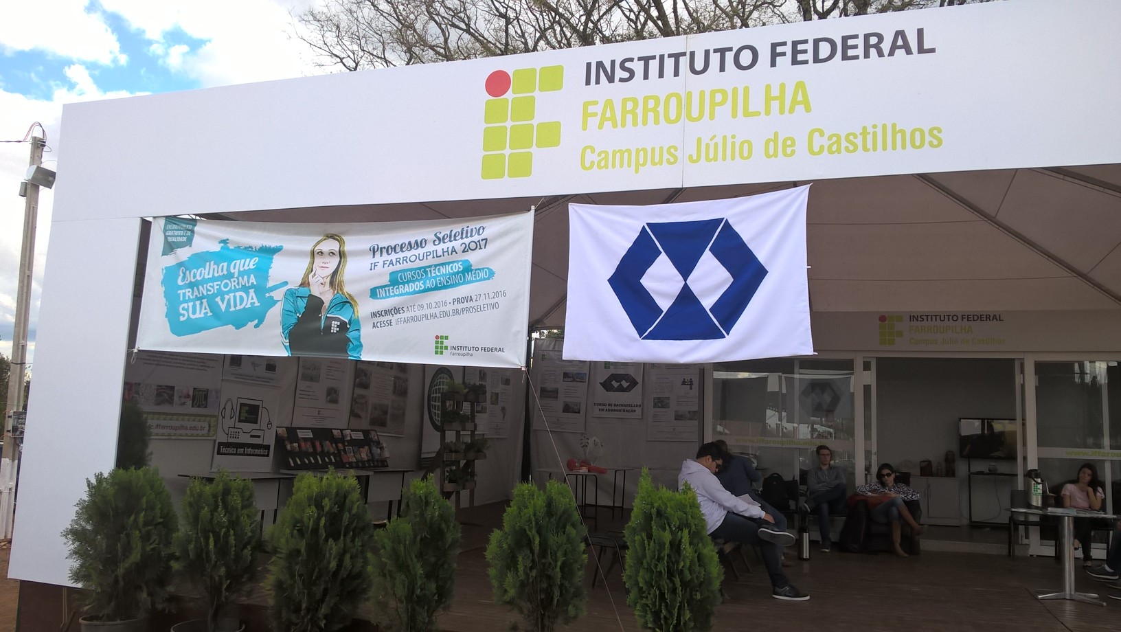 No estande do IFFar – Campus Júlio de Castilhos, foram disponibilizadas informações sobre os cursos ofertados pelo Campus, material de apoio e informações sobre o Processo Seletivo IF FARROUPILHA 2017, dos Cursos Técnicos Integrado: em Agropecuária, em Informática e Técnico em Comércio (PROEJA); Cursos Técnicos Subsequentes em Agropecuária e em Alimentos; e, Cursos Superiores: Administração, Agronegócio, Ciências Biológicas, Matemática e Produção de Grãos.