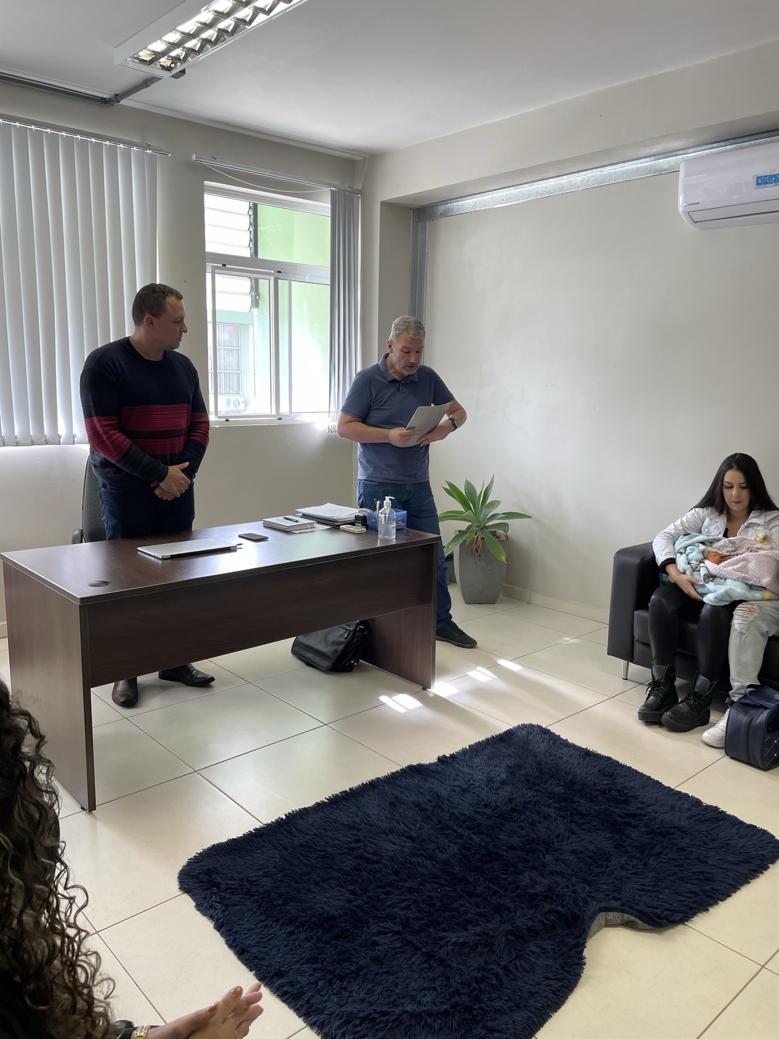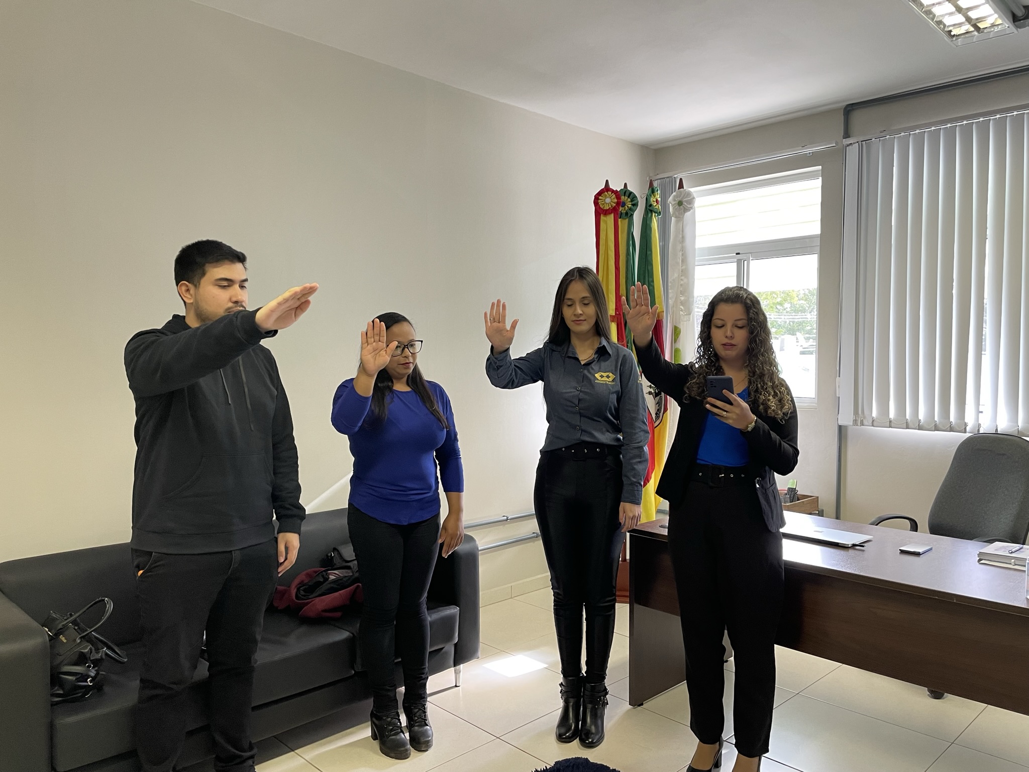 No último dia 19 de abril aconteceu a colação de grau de gabinete dos cursos de Administração e Administração no gabinete da Direção Geral do Campus Júlio de Castilhos. Estiveram presentes o diretor geral, Rodrigo Carlotto, as coordenadoras dos cursos, Administração – Luci Schumacher e Matemática – Tanísia de Carli Foletto, professoras, familiares e os/as concluintes Anne Laíne Messias Oliveira, Larissa Martins Vieira, Mateus Robaina Oliveira e Quíndeli Monteiro Becker Belo (da Administração), Eloar Moraes da Silva e Laizy Martins Marques (da Matemática).
