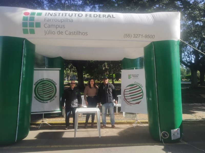 O presidente do DA do CST em Gestão em Agronegócio Alexandre Matias, e a Vice-presidente, Ana Vitória Roos, lideraram a participação do diretório no evento. Eles destacaram a importância da interação com a comunidade castilhense e a oportunidade de colocar o curso de Agronegócio em evidência, mostrando o compromisso do IFFar Campus Júlio de Castilhos com o desenvolvimento da região e a formação de profissionais capacitados para atuar no setor do agronegócio.