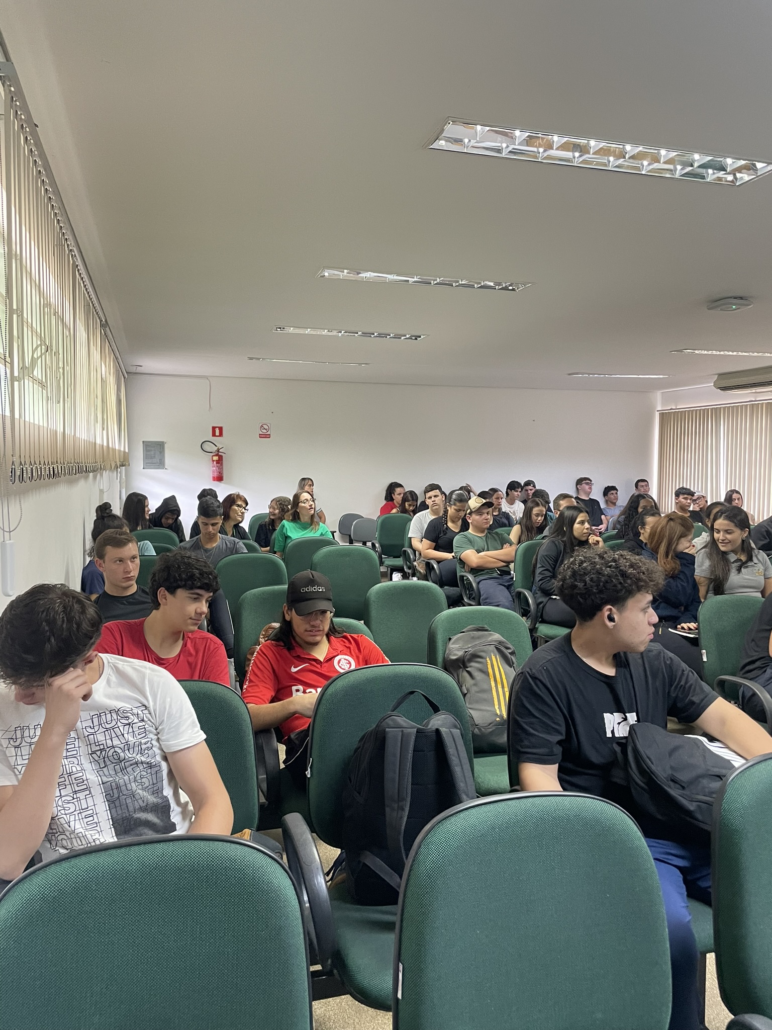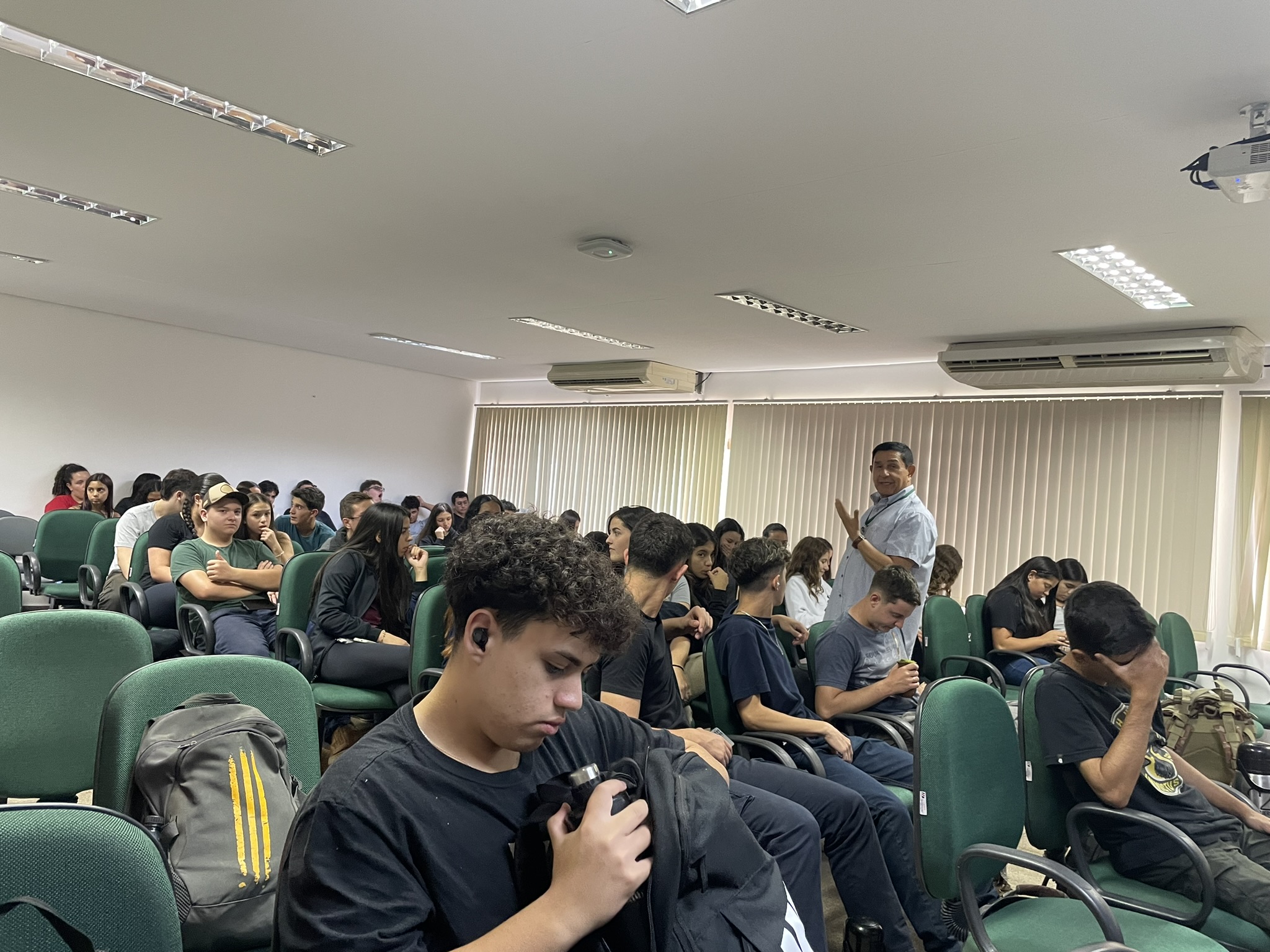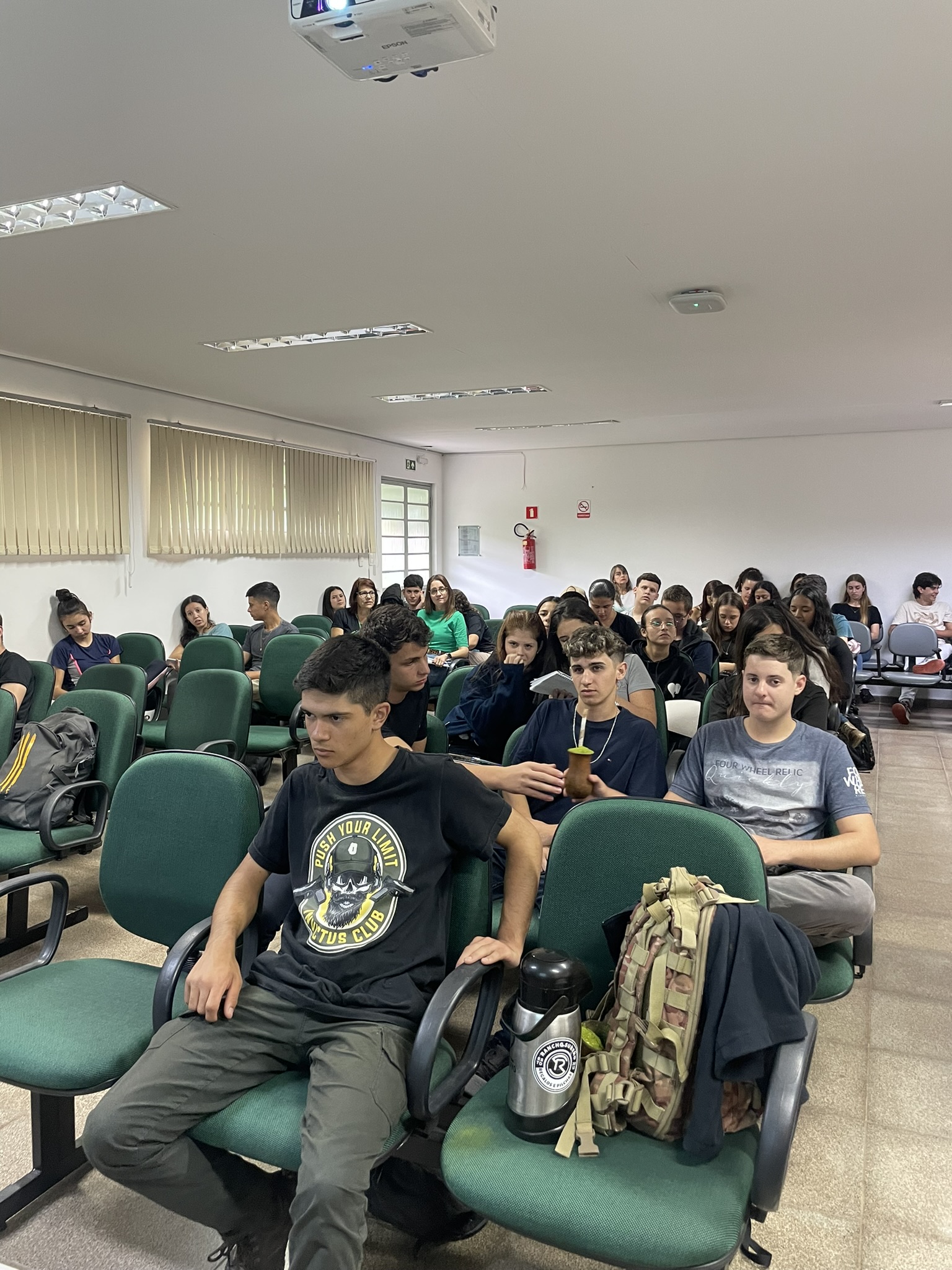 Na tarde de terça-feira (23), no anfiteatro do prédio A, os/as alunos/as dos primeiros anos da agropecuária que antes da exibição do documentário tiveram uma breve apresentação do professor Aristeu, que contou um pouco de história aliada a arte brasileira, trazendo personagens, que são referência nos povos originários e são importantes na história do Brasil, como Clara Nunes e Ailton Krenak (mais recente).