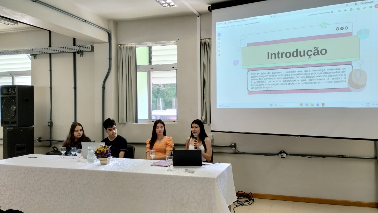 Após a abertura ocorreu uma roda de conversas entre alunos/as e egressos/as apresentando projetos desenvolvidos no curso, possibilitando a visibilidade dessas inciativas e incentivando novos/as alunos/as a participarem.