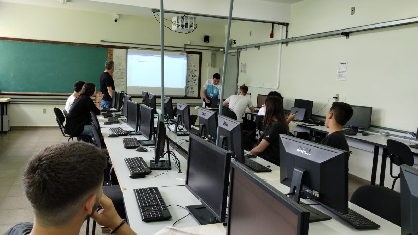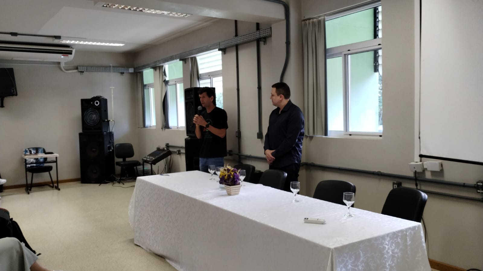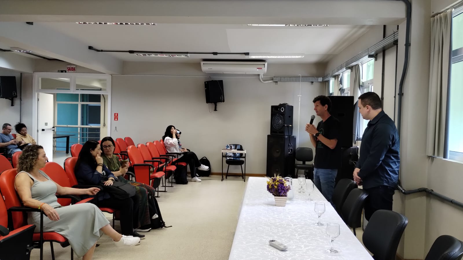 Na manhã da quarta-feira (23) aconteceu a abertura do 12º SETIF, com a presença do diretor-geral do campus Júlio de Castilhos, Rodrigo Carvalho Carlotto, e do coordenador do técnico em informática integrado ao ensino médio, Ênio Grigio. Nas falas iniciais elogiaram os esforços dos/as estudantes tanto para participar de projetos como para finalizar o curso no tempo ideal.