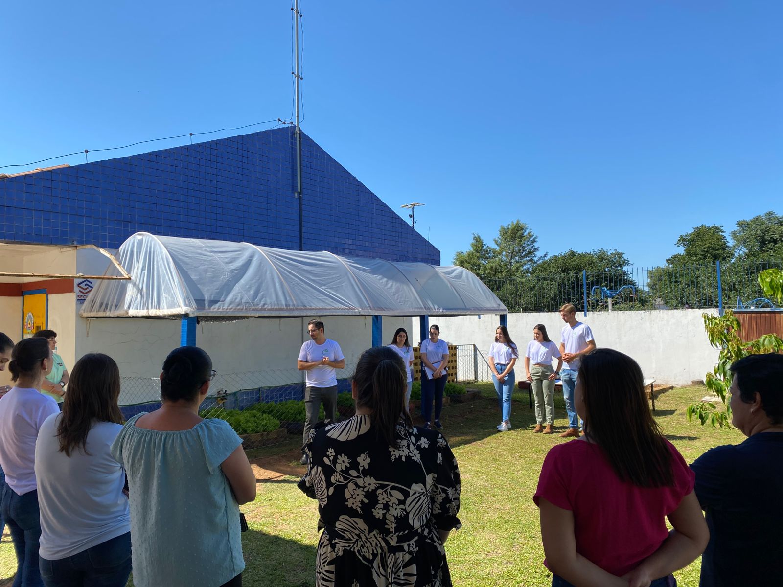 O projeto foi uma iniciativa dos/as alunos/as durante a disciplina Projeto Integrador Extensionista no curso de Agronomia. No primeiro ano aconteceu a criação dos projetos, no segundo ano ocorreu a execução do mesmo, e no terceiro ano acontecerá a apresentação dos resultados. A ideia partiu de três (3) estudantes que posteriormente ganharam o apoio de mais três (3) alunos/as durante a construção da estufa na escola Elza Rigon.