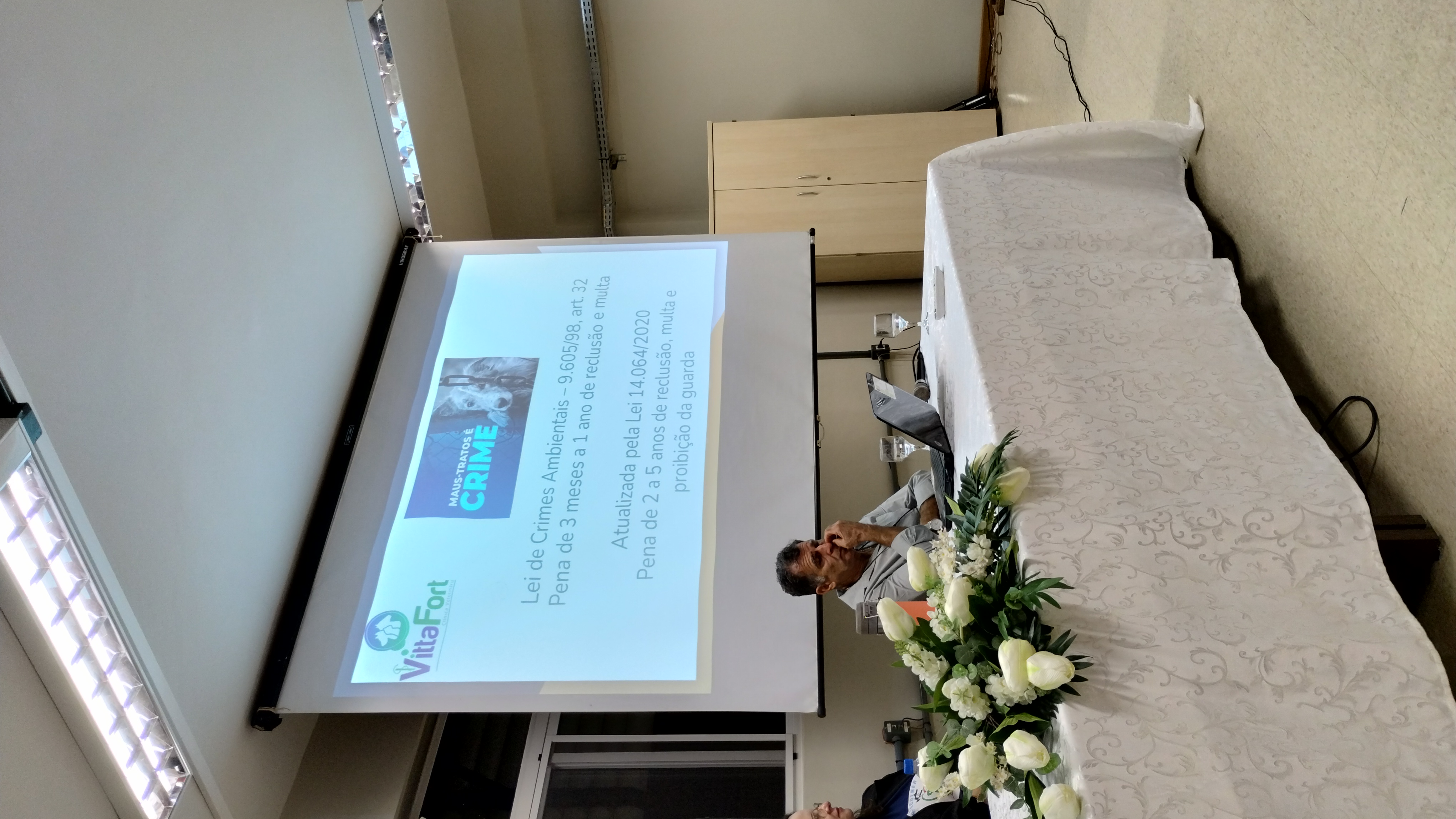 Na noite de terça-feira (15/04) aconteceu uma palestra sobre o mês de prevenção à crueldade animal – Abril Laranja, no auditório do prédio administrativo. O evento foi organizado pelo projeto Acolher. Os palestrantes abordaram o tema dos maus-tratos e ao final responderam perguntas sobre a causa animal e como proceder em determinadas situações envolvendo cães, gatos e cavalos.