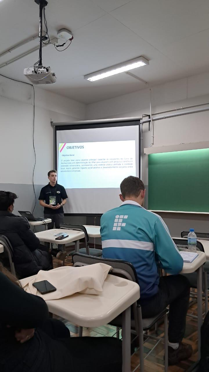 O trabalho apresentado por Vinícius integrou o projeto “Bem-Viver”, desenvolvido sob orientação das professoras Franciane Ceretta, Giovana Damian e Beatriz Klimeck, respectivamente, docentes das disciplinas Metodologia Científica, Contabilidade Geral e Marketing I. A iniciativa surgiu da integração dessas três disciplinas, promovendo um trabalho de extensão interdisciplinar.
