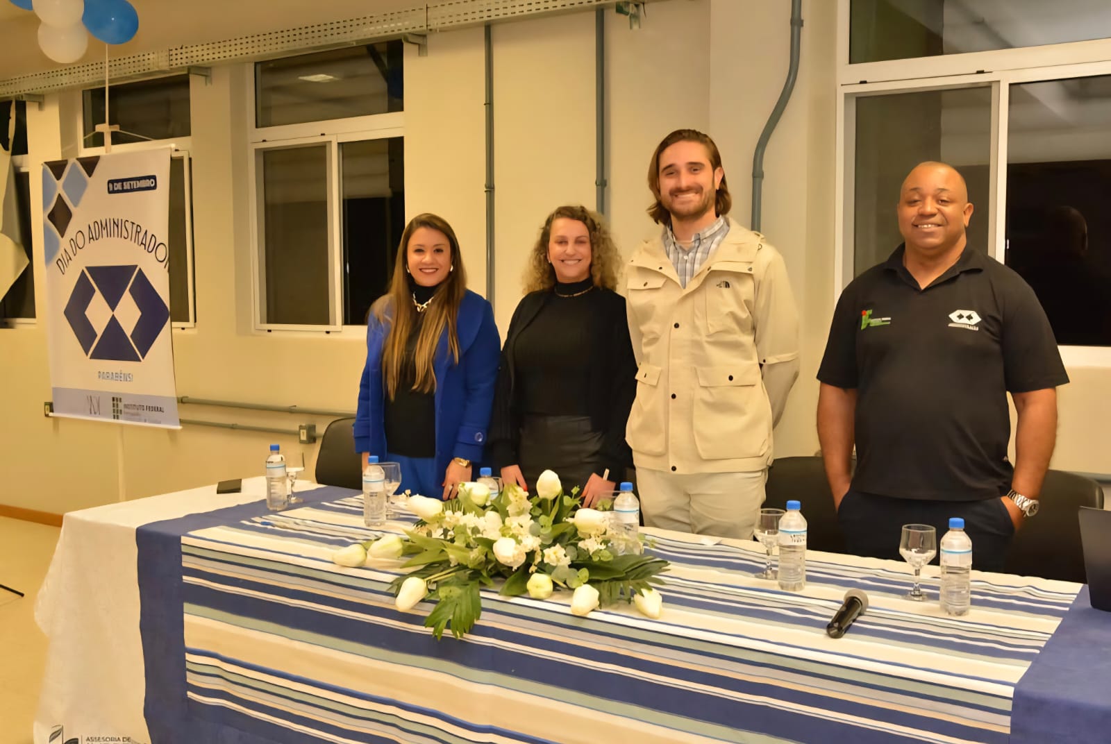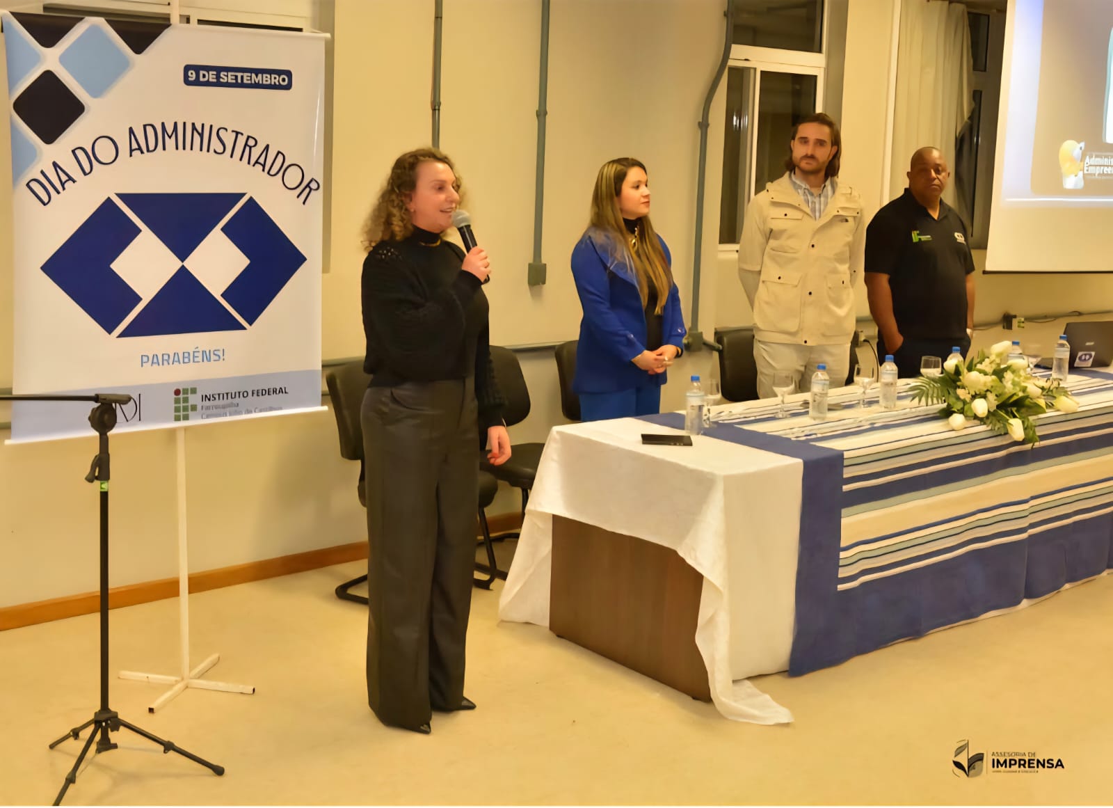 Integração e propósito: A abertura da semana também reforçou o papel da Administração como uma área estratégica e transformadora. Silvia Montagner, Diretora Geral do Campus IFFAR JC celebrou o início das atividades da Semana com entusiasmo e destacou sobre "a relevância dos Administradores, os parabenizando pelo seu dia, 9 de setembro". Discursou também sobre "o papel transformador do conhecimento e o compromisso da instituição com a formação de profissionais que estejam preparados para os desafios do mercado". A coordenadora do curso, professora Franciane Cougo da Cruz Ceretta, comentou: “Queremos que nossos estudantes enxerguem a profissão como um instrumento de mudança. Essa troca entre academia, mercado e instituições financeiras é essencial para formar Administradores conscientes e preparados.” Ao final da noite todos foram agraciados com um "parabéns" e um bolo para comemoração da data.