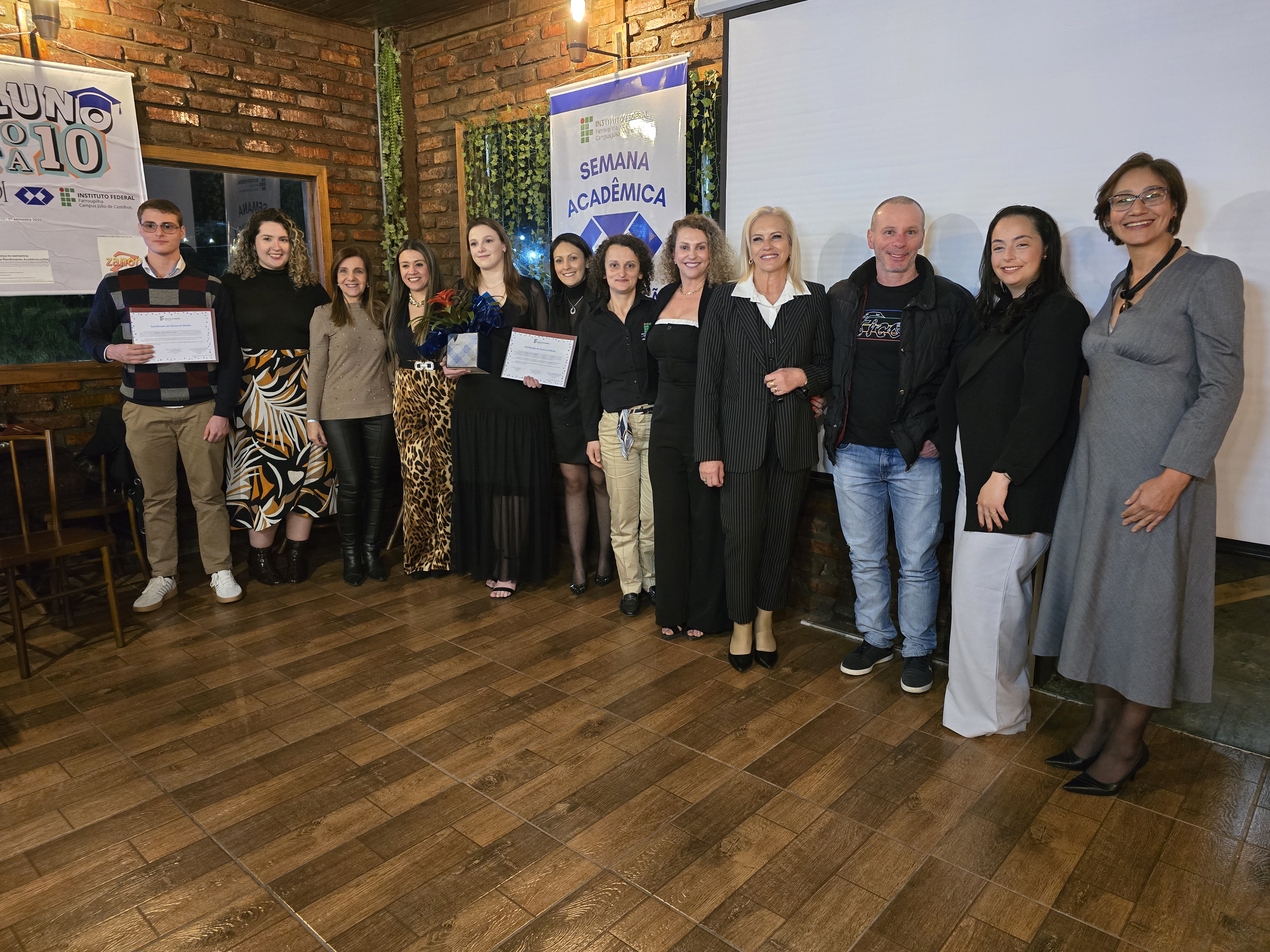 A entrega do reconhecimento ocorreu logo após a palestra da professora Vânia de Fátima Barros Estivalete, que abordou o tema “Planejamento de Carreira em um Mundo em Transformação e a importância do CRA”. Desta maneira, a noite foi marcada por emoção, inspiração e celebração. O estudante homenageado recebeu o certificado de "Honra ao Mérito" que foi entregue pela Diretora do campus IFFAR/JC, Silvia Montagner. Além disso, ganhou uma linda cesta de café da manhã do Supermercado Zanon, parceiro da ação e do evento, entregue por Tamires Schmeling - gerente administrativa do Supermercado, que destacou: “Fazer parte do projeto Aluno Nota 10 nos mostra a importância de potencializar e destacar alunos que estão abertos a se desenvolver, incentivando todos a fazer parte deste time de profissionais brilhantes do futuro!”.