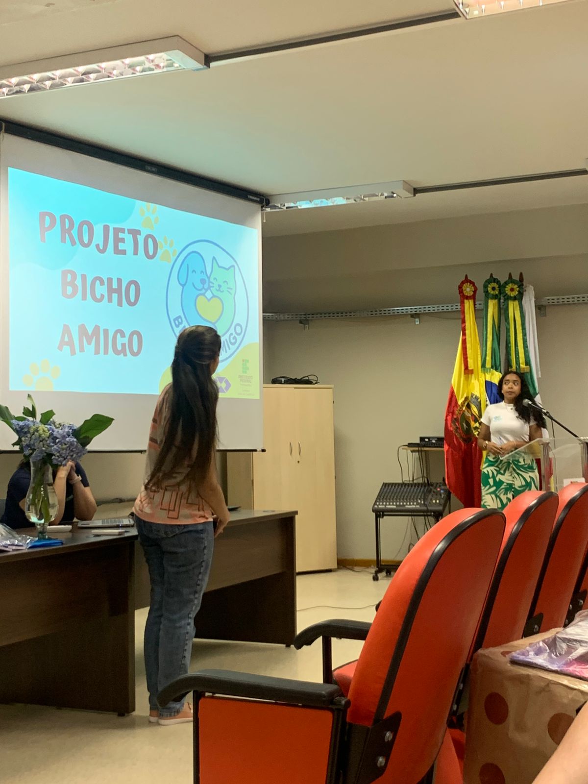 Seguindo a programação, as turmas 10, 11, 12 e 13 do Curso de Administração apresentaram seus projetos e ações desenvolvidas em parceria com a comunidade, abordando temas como causa animal, empreendedorismo, ética digital, sustentabilidade, gestão, inclusão social, entre outros.
